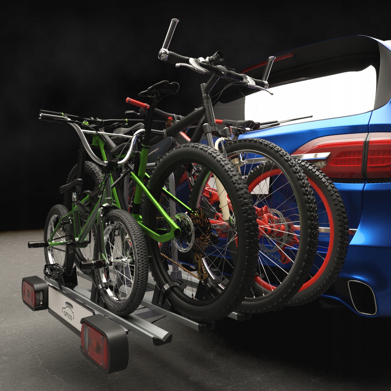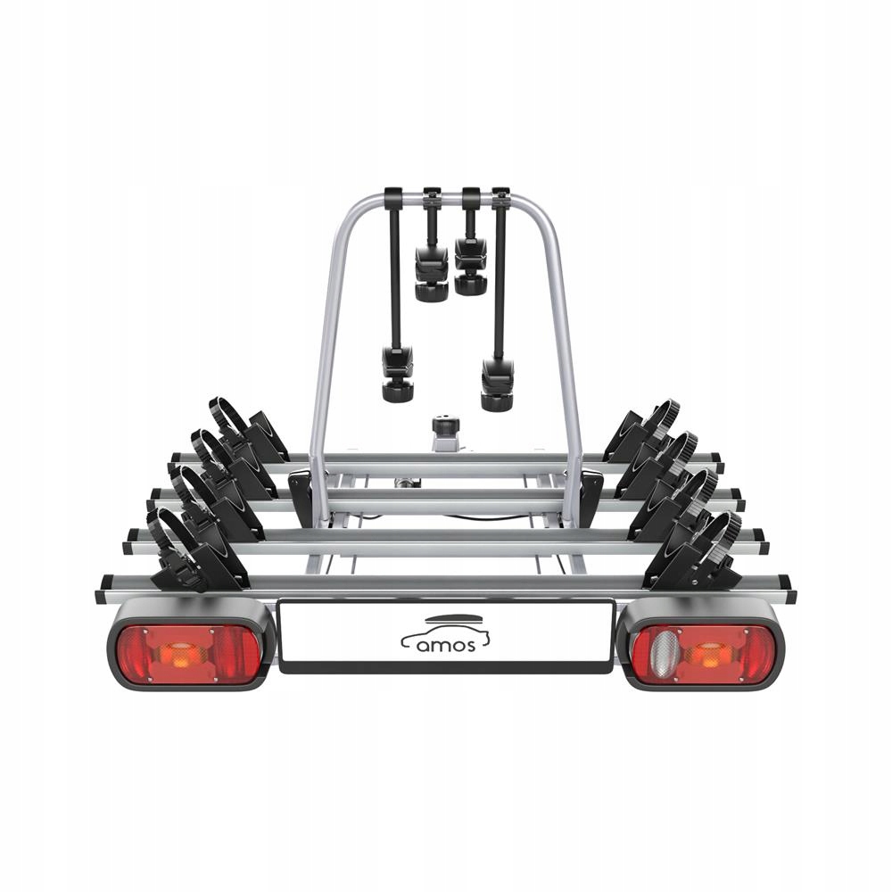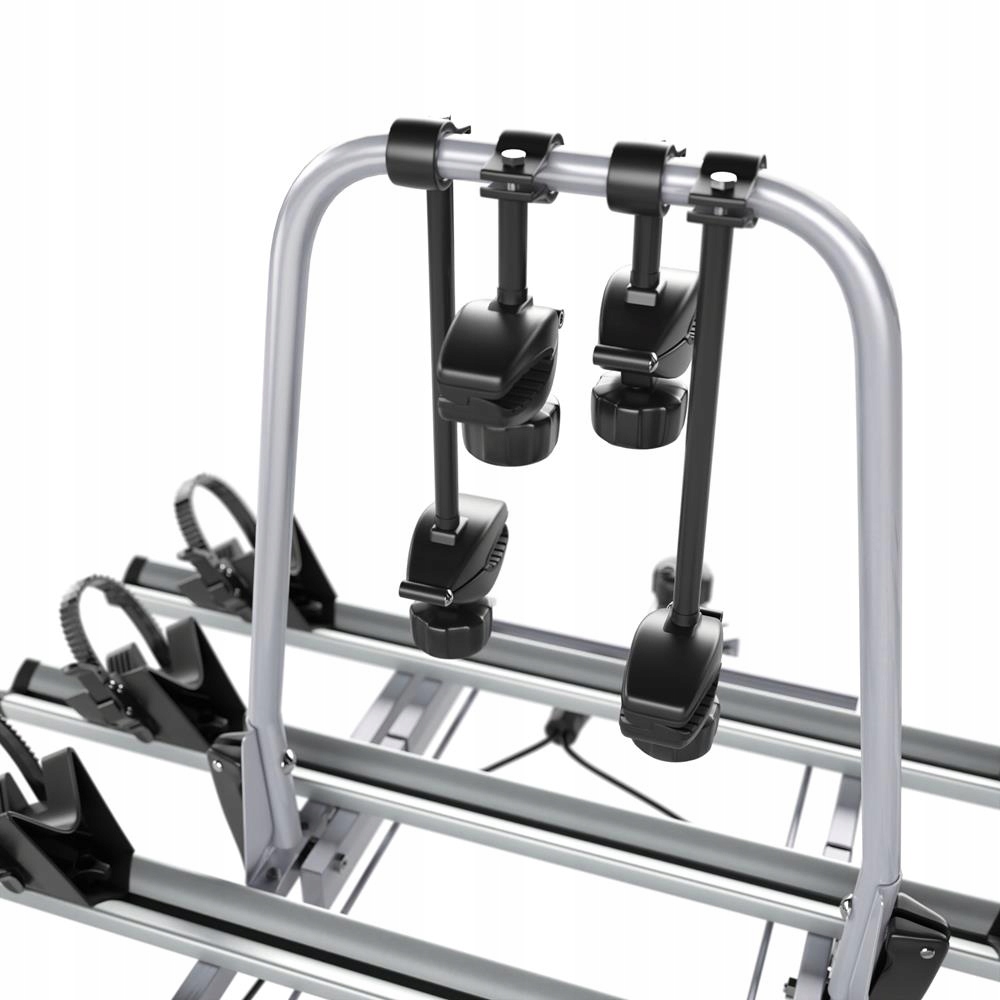 - Стійка дозволяє комфортно транспортувати чотири велосипеди, а міцна конструкція зі сталі та алюмінію гарантує її міцність і довговічність, а також елегантний зовнішній вигляд