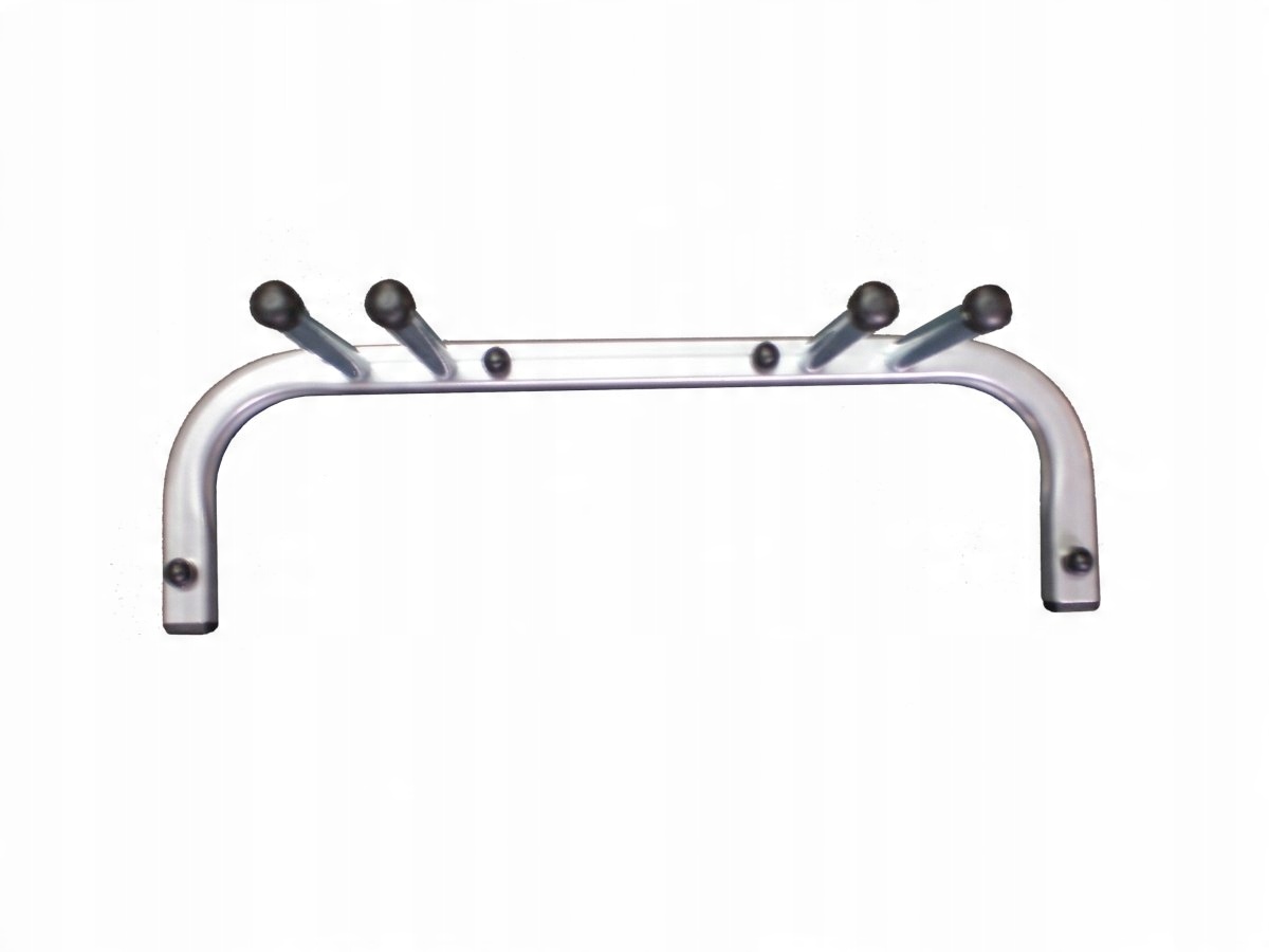 Використовується для підвішування двох пар лиж. Основа вішалки виготовлена зі сталевого профілю, а кронштейни виготовлені з прута. Все це покрито порошковим покриттям у срібло. Підбір відповідних матеріалів робить вішалку дуже стійкою та естетично виконаною. Він прослужить багато років і підтримуватиме порядок у вашій квартирі.