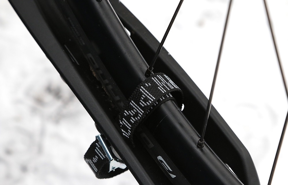 - Регульовані кронштейни для кріплення рами велосипеда, завершені міцним ремінцем.