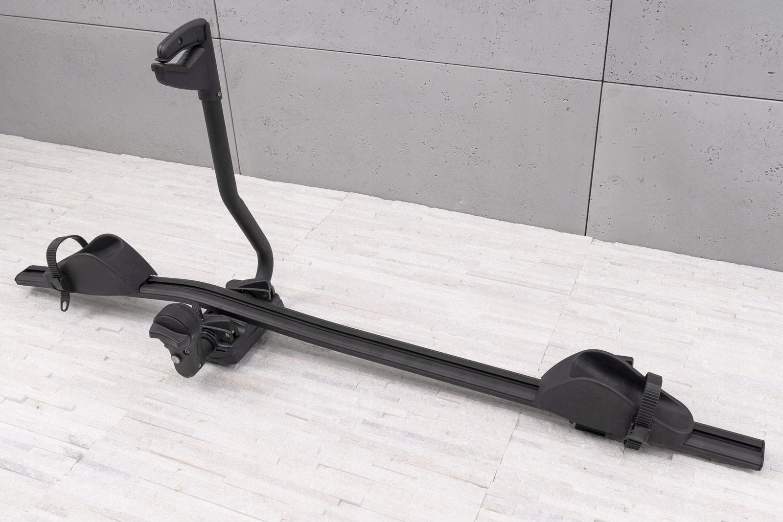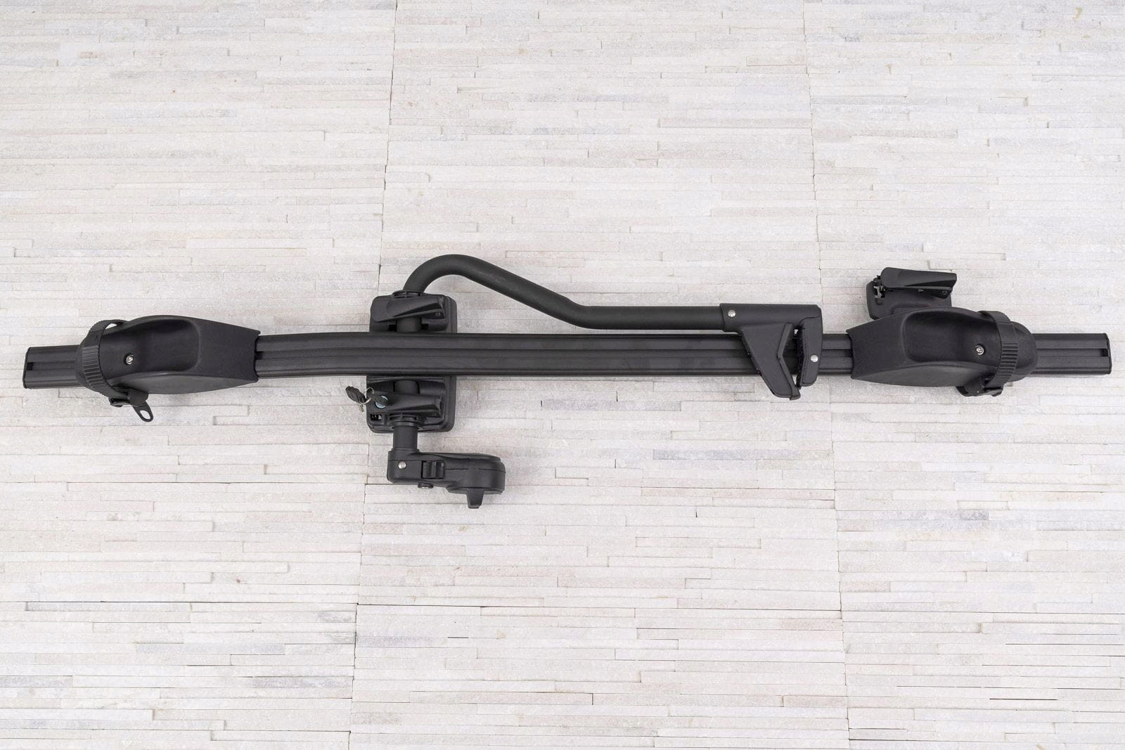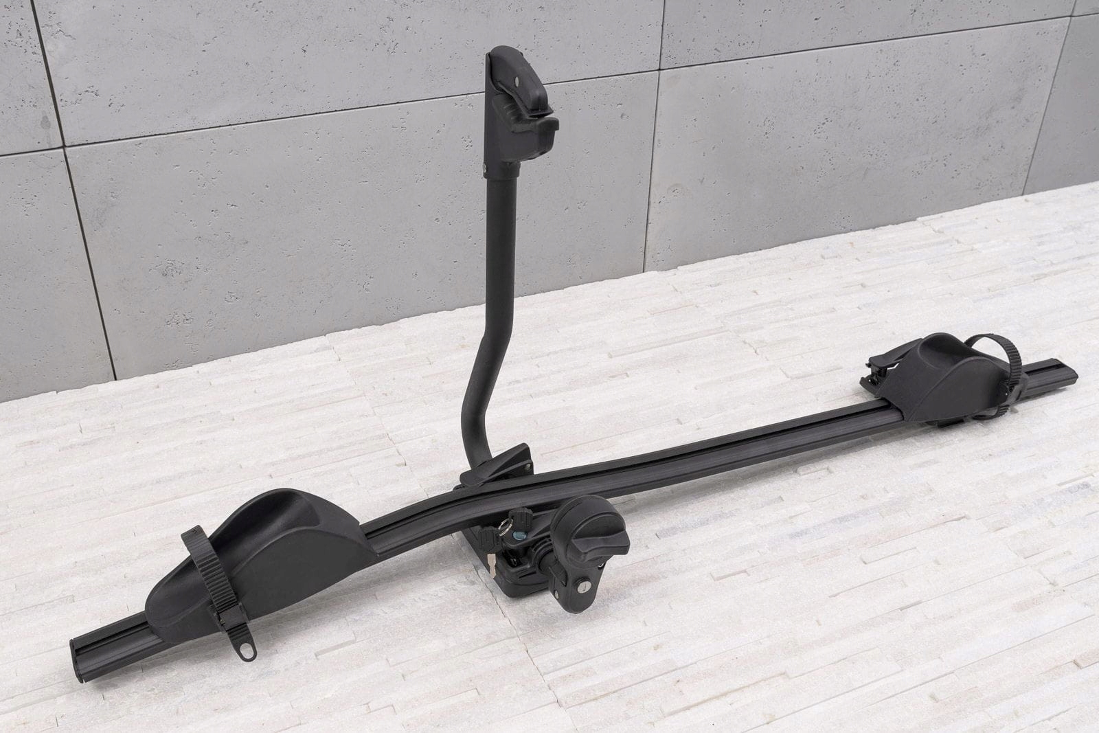 Багажник для велосипеда чорного кольору, монтується на дах автомобіля, сумісний з рейлінгами, адаптованими для установки в системі «Т».