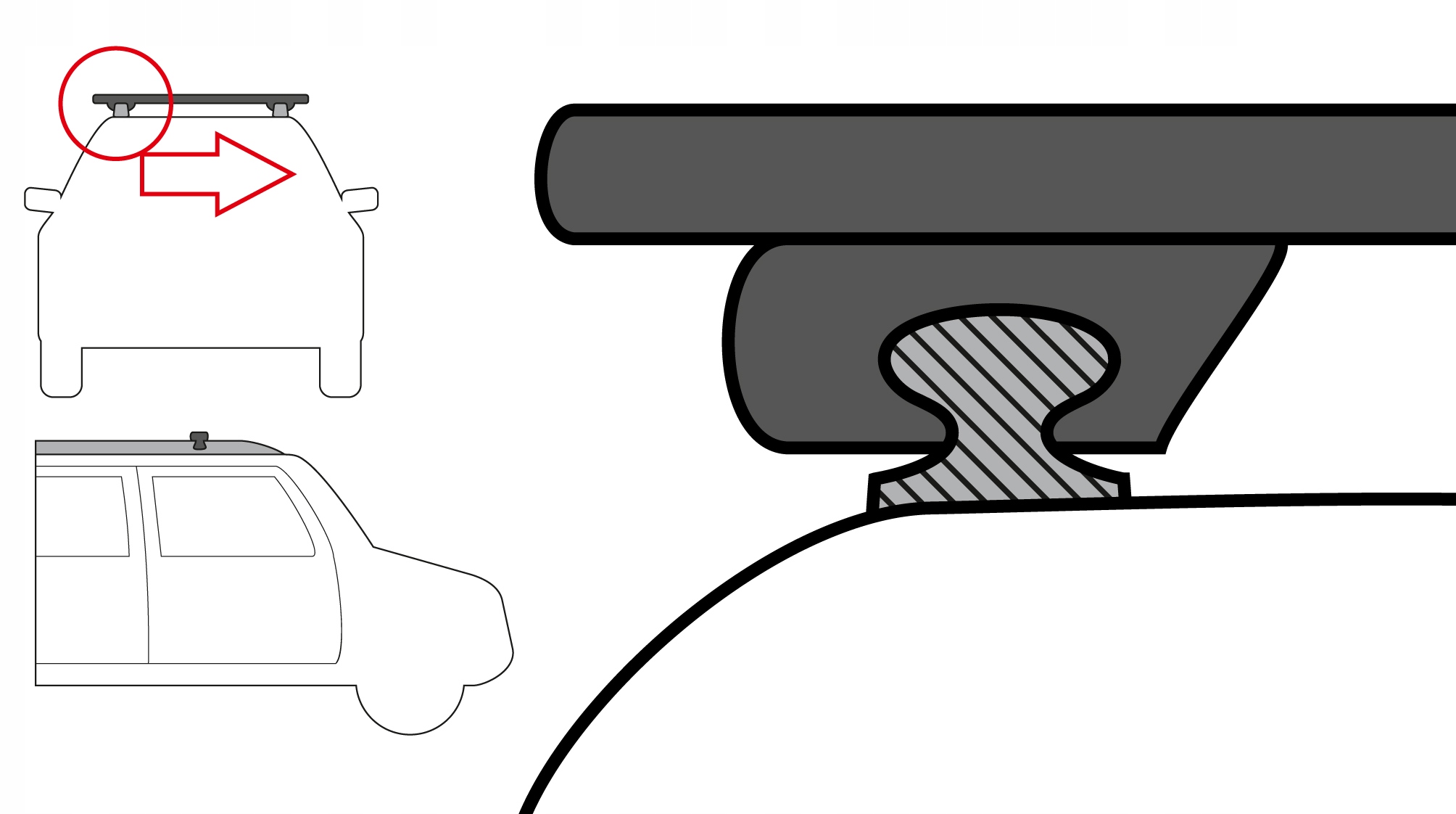 Сучасні, чорні рейлінги з низьким профілем і формою крила, завдяки чому ідеально відповідають стилю останніх моделей автомобілів. Аеродинамічний профіль стійки зменшує опір повітря і знижує витрату палива, що робить водіння з ними дужекомфортним. Пропонований набір забезпечує швидку та легку установку за допомогою системи «CLICK» - достатньо встановити ніжку балки на її профіль, і пролунає характерний клацання b> правильна установка на балку.