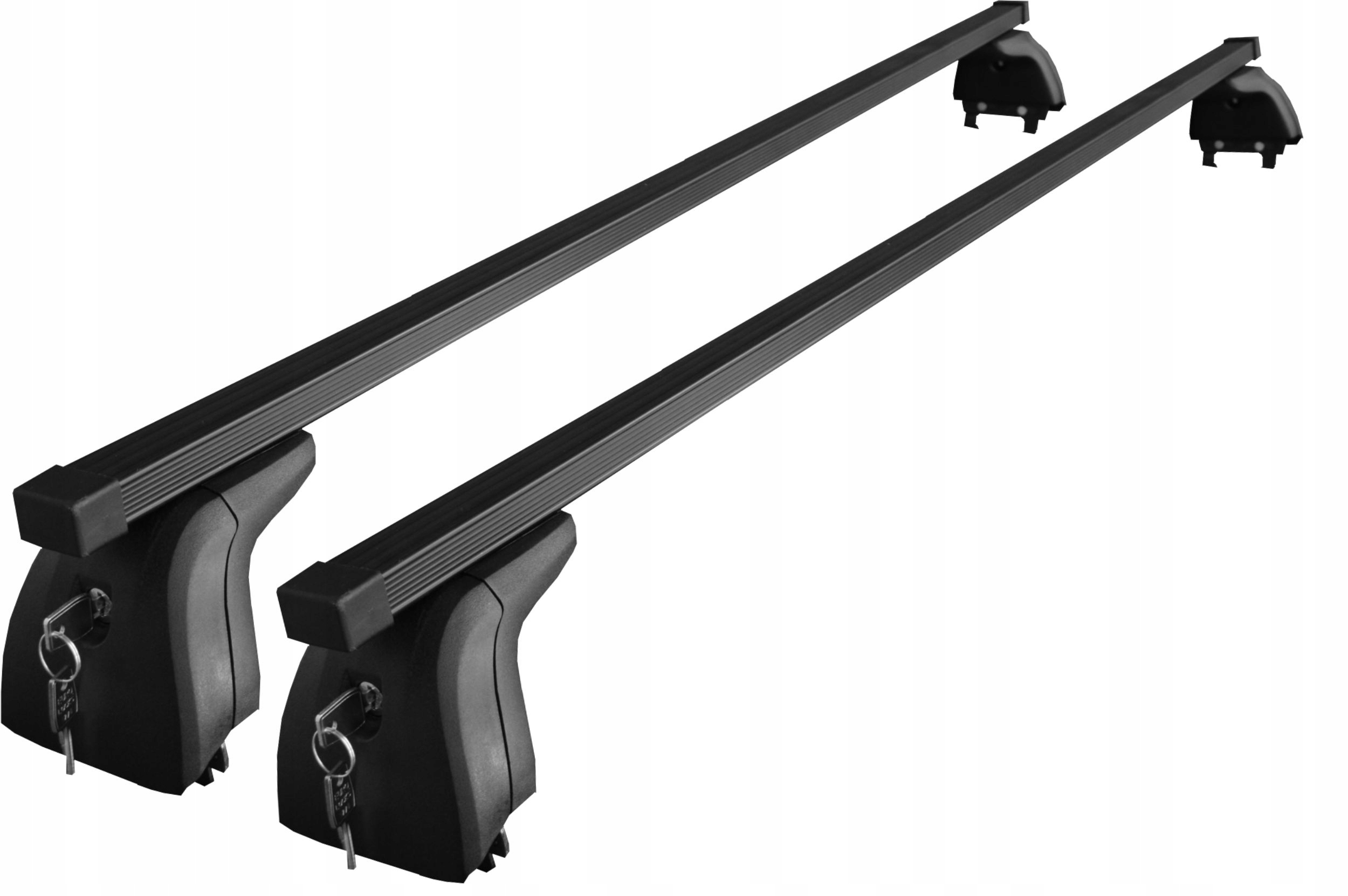 Представлений стелаж складається з суцільних монтажних ніжок (голова + кришка з замком + КОМПЛЕКТ), виготовлених з металу та пластику, та двох оцинкованих сталевих балок (з чорного ПВХ покриття) з прямокутним перетином 32х20мм. Стійка забезпечує міцність кріплення до точок кріплення на даху (під пластиковою планкою) автомобіля. Весь набір в універсальному чорно-сріблястому кольорі. КОМПЛЕКТИ, тобто монтажні ніжки, можна замінити, щоб підібрати стійку до іншого автомобіля. Спеціальна конструкція ніжок адаптує стійку до форми даху.