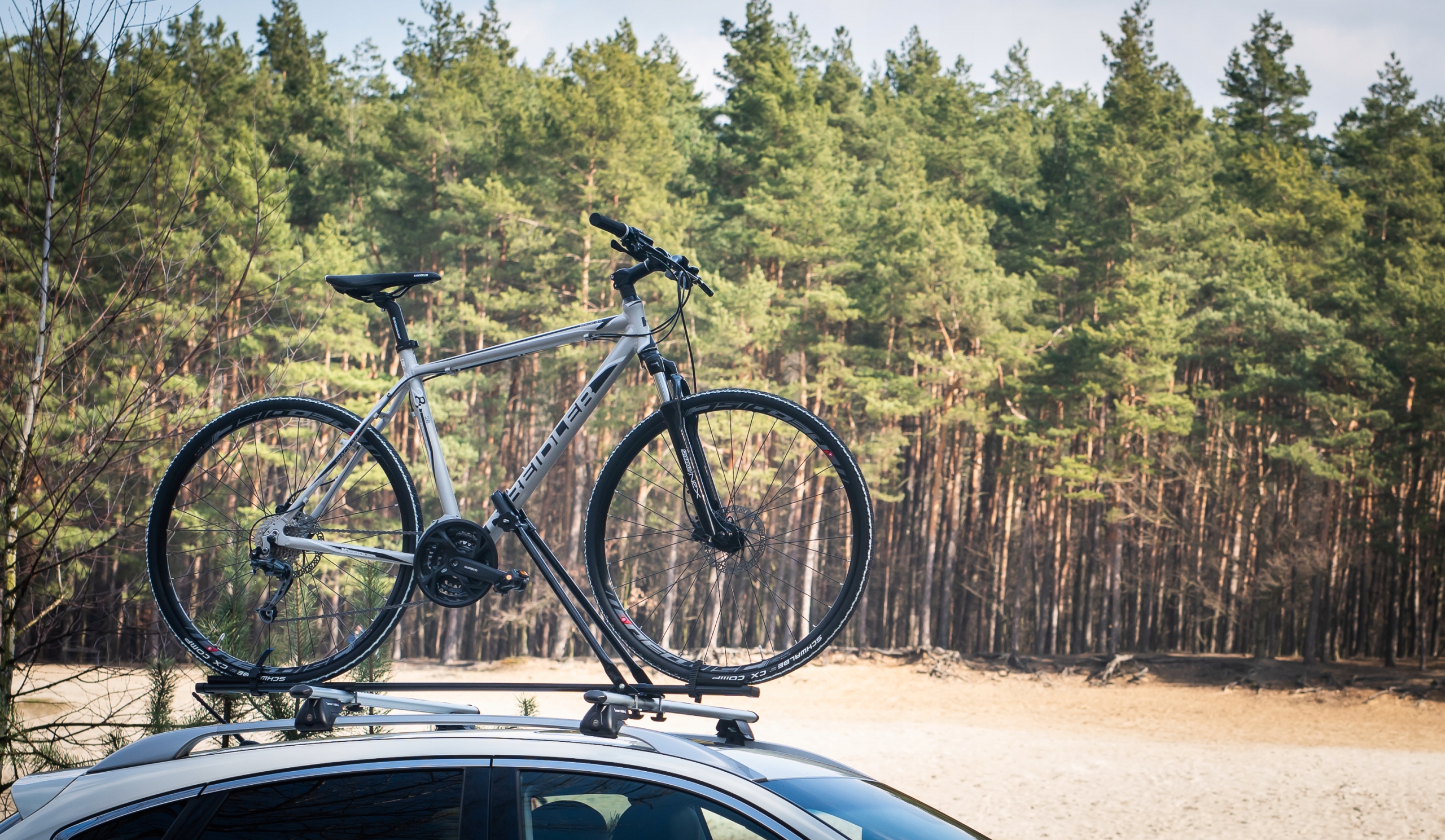 На фото нижче представлений зовнішній вигляд навісного багажника на автомобіль у варіанті з алюмінієвою балкою - в наявності на іншому аукціоні разом з велобагажниками нашої марки та велосипедами німецької марки Kreidler (які не є предметом аукціону). аукціон).