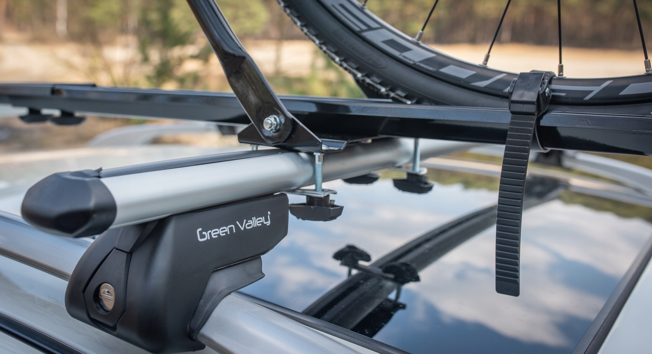 - Просте встановлення - просто поверніть ключ, зніміть ковпачок із замком і за допомогою шестигранного ключа, що входить до комплекту, прикрутіть стійку до рейок автомобіля.