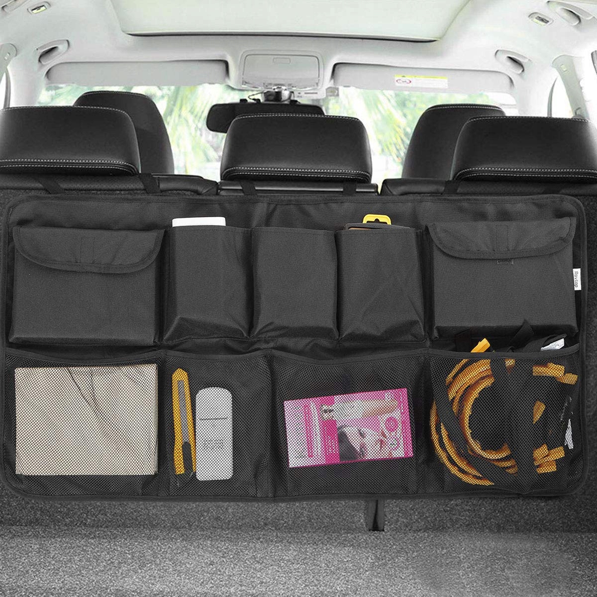 Просто розмістіть цей органайзер за задніми сидіннями, щоб він нікому не заважав. Його геніальна система зберігання вміщує необхідні аксесуари, такі як напої, закуски, журнали чи карти, і підтримуватиме порядок у вашому автомобілі. Завдяки тому, що органайзер кріпиться до спинки, в багажнику залишається багато необхідного місця. Геніальна річ, яка точно знайде застосування у вашому автомобілі!