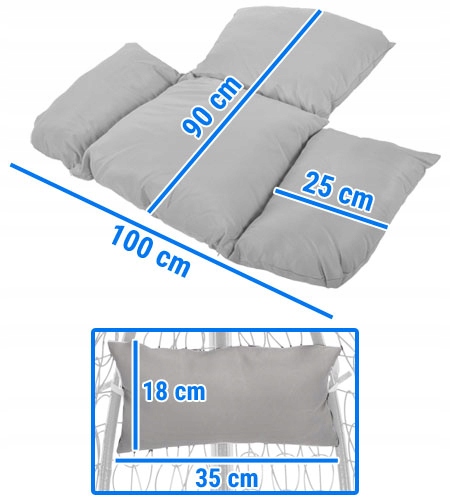 ✔ Включає: металевий каркас, плетений кошик, велика подушка для сидіння, невеликий підголівник подушки та елементи для монтажу та призупинення кошика.