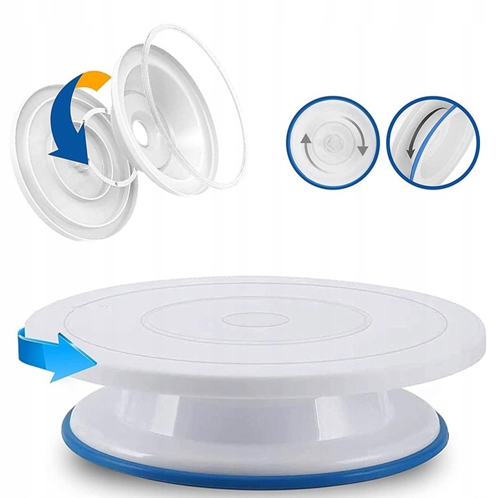 Нелипкий і нетоксичний пластик, який можна мити в посудомийній машині, естетично поєднується, щоб створити обертовий столик для торта. Приховані шарикопідшипники дозволяють безперешкодно обертати ваш торт на 360 градусів, щоб ви з легкістю переміщали його під час прикраси. Нековзке силіконове кільце в нижній частині однаково зручно як для правшів, так і для лівшів, тому воно не слизьке, коли ви глибоко занурюєтеся в процес декорування.