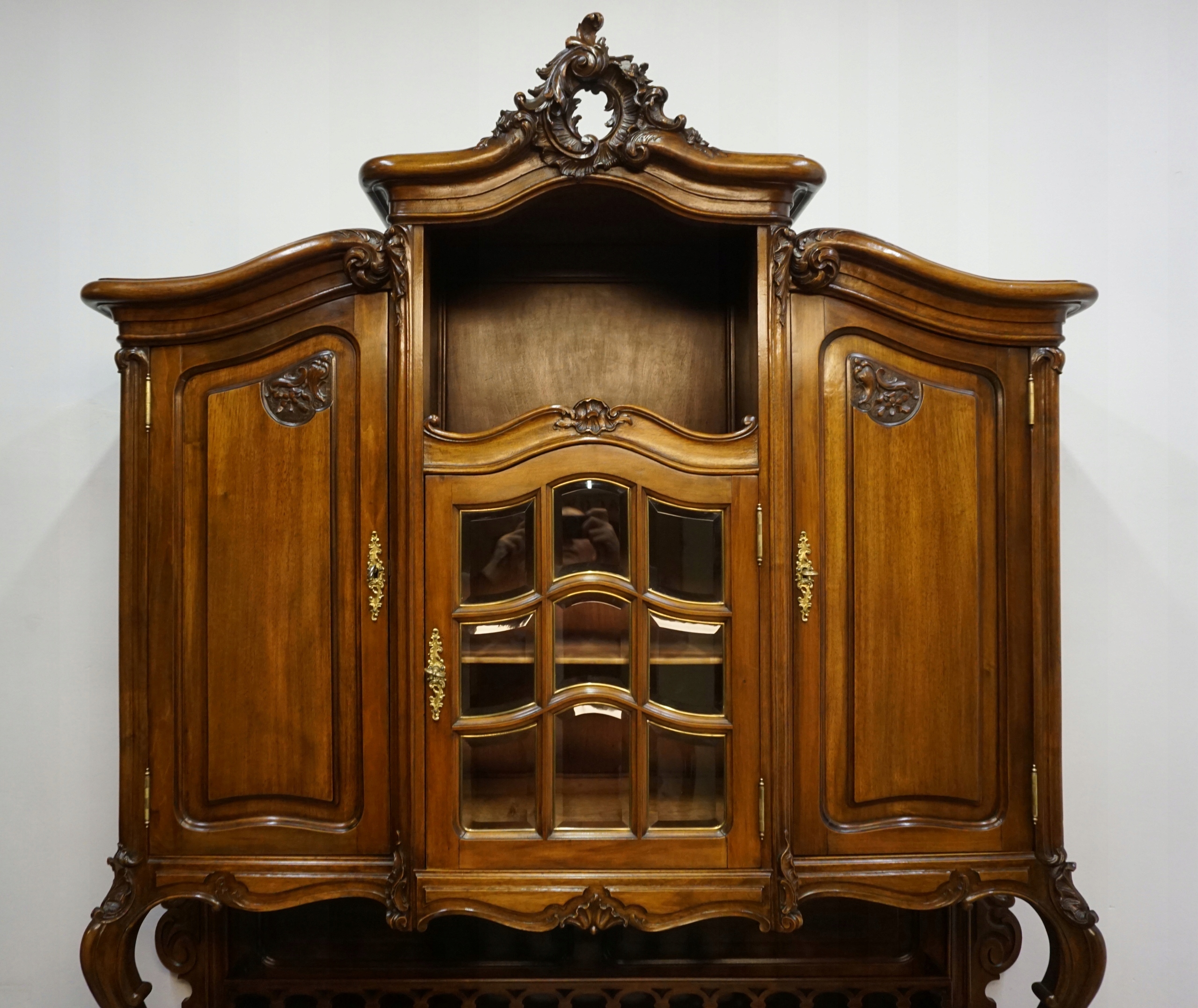 Багатий різьблений сервант Людвік Рокайл зі склінням.