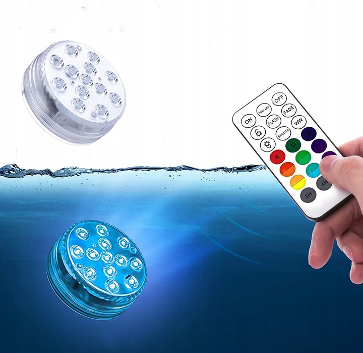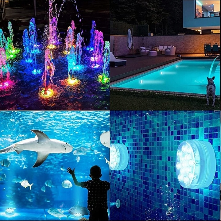 басейн освітлення - 16 барвистих світильників, які ідеально висвітлюють басейн, фонтан або акваріум. Лампи мають 13 сильних, високоякісних світлодіодів, що контролюються пультом дистанційного керування.