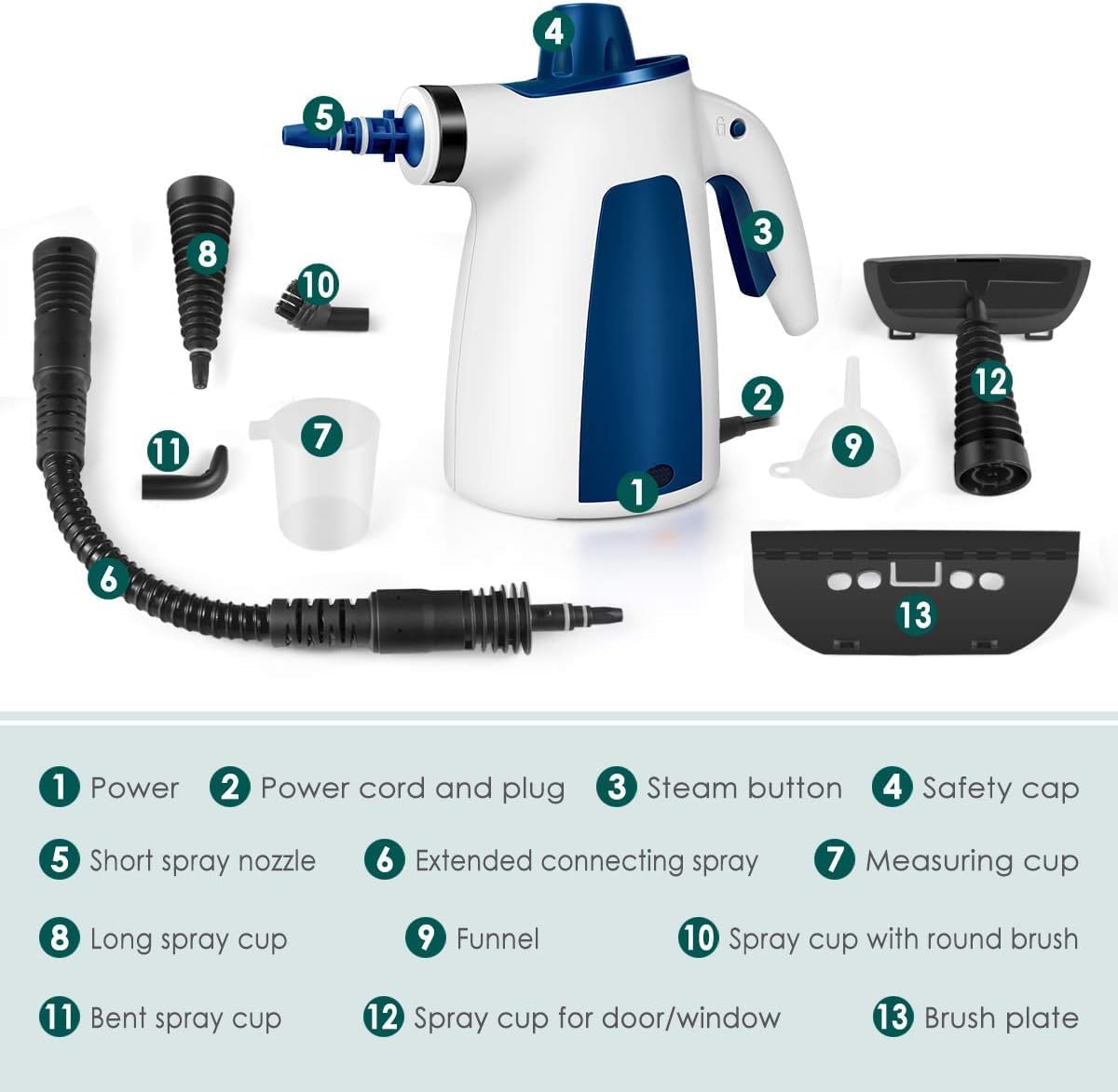багатофункціональна парна шайба під тиском, 9 штук додаткових елементів, 350 мл, багатофункціональні, для видалення плям з підлоги, вікон, килимів, диванів, штор, автокрісла