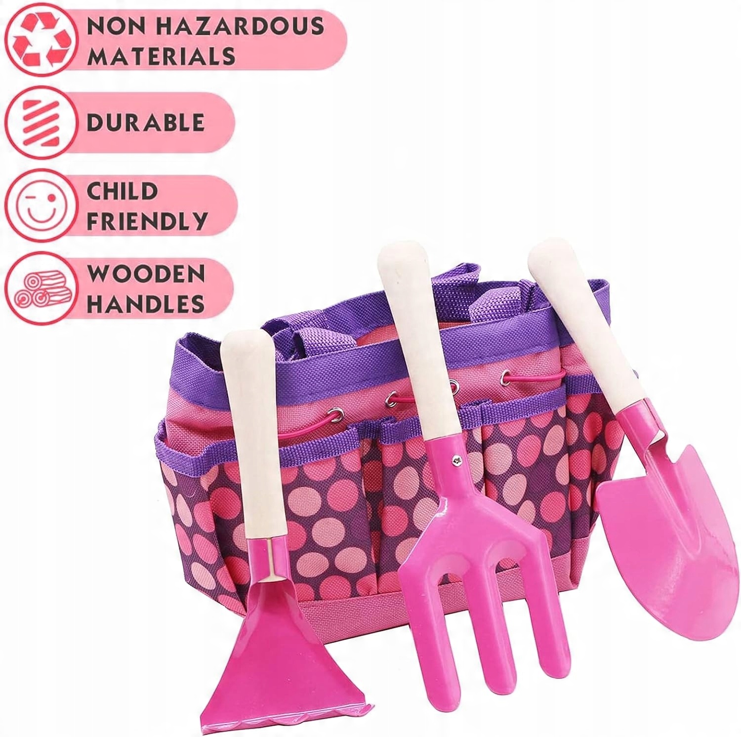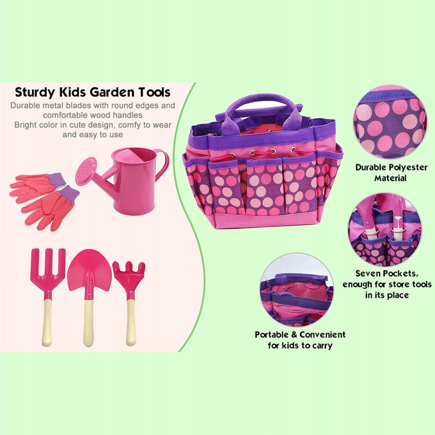 Багатофункціональна дитяча сумка для інструментів, набір дитячих садових інструментів із 6 предметів, набір інструментів для саду на відкритому повітрі, дитяча лійка, садова лопата (рожева)