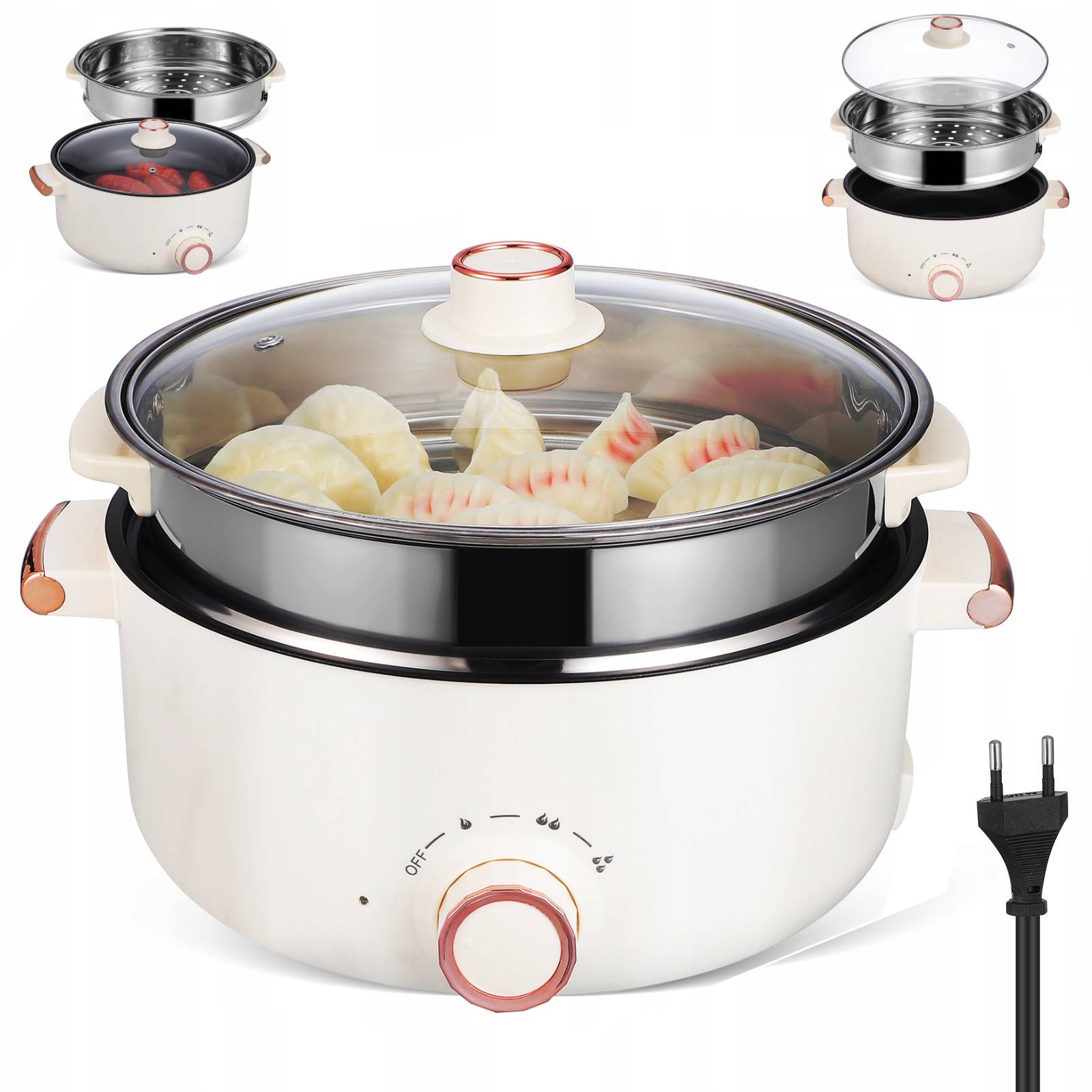 ⭕AC 220 В • Вилка ЄС • 4 л • 1000 Вт • З кошиком для пароварки • 5-6 осіб