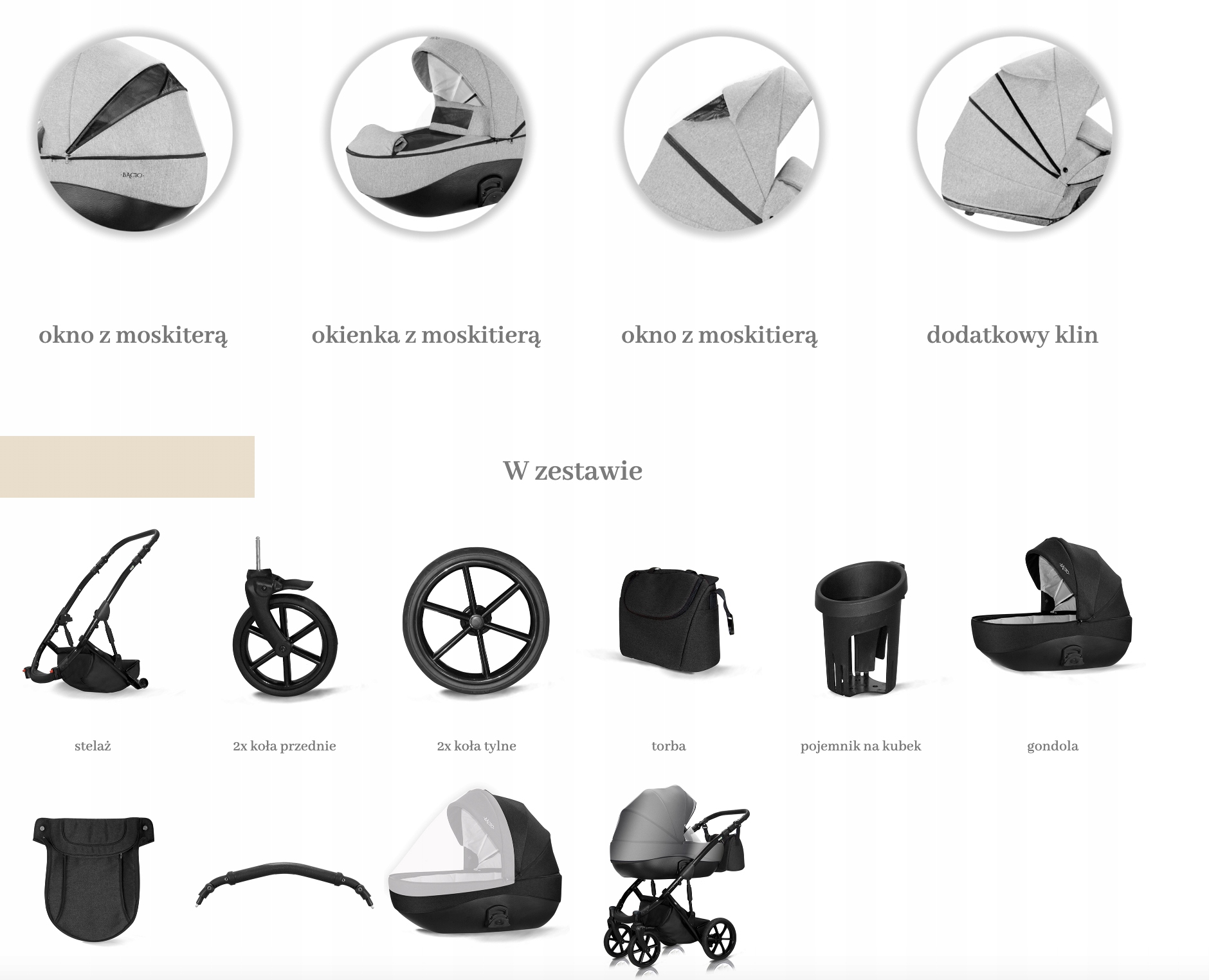 - Bacio складається до компактних розмірів, що полегшує транспортування та зберігання.