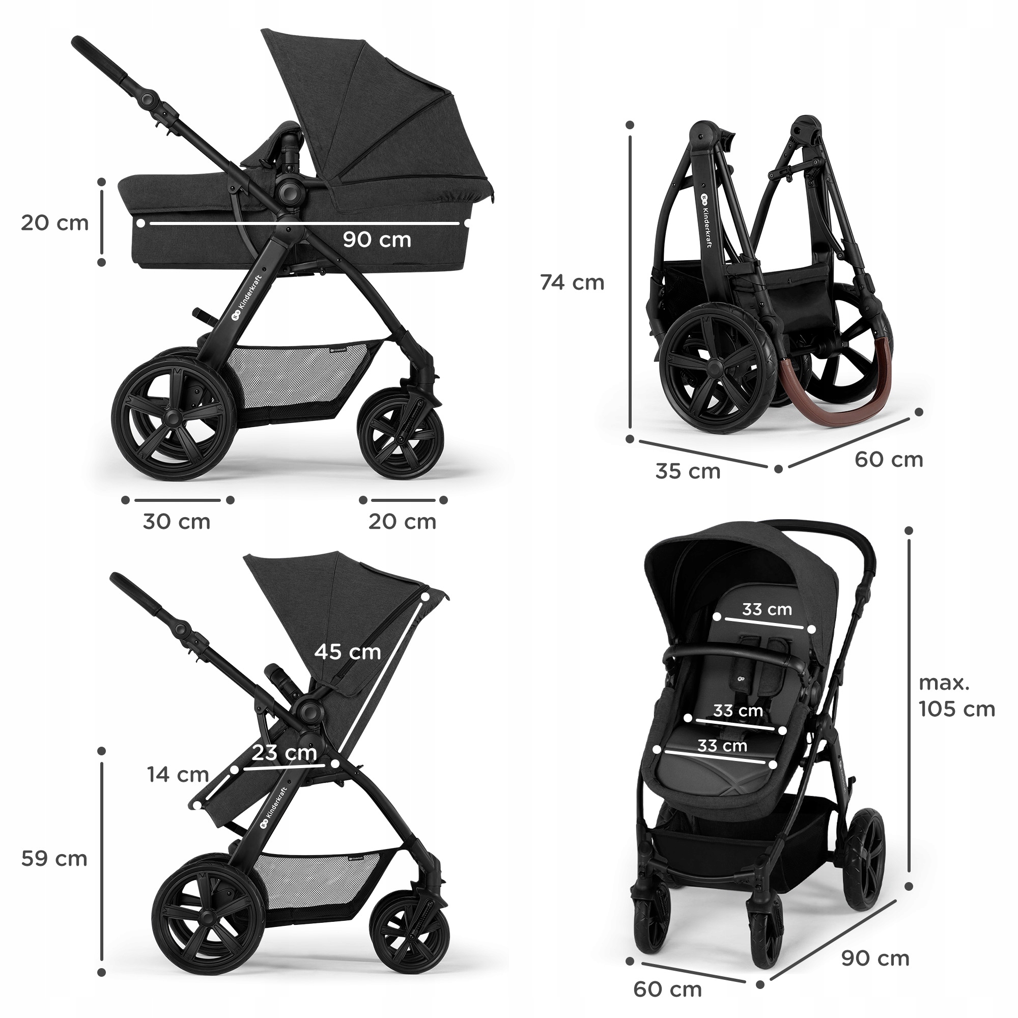 - Коляска в складеному вигляді: 90 x 60 x 105 см