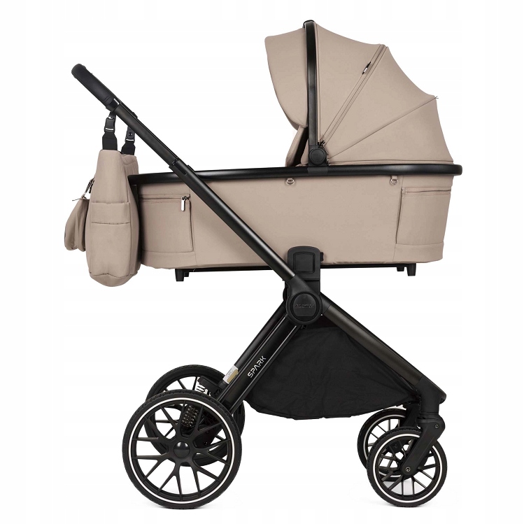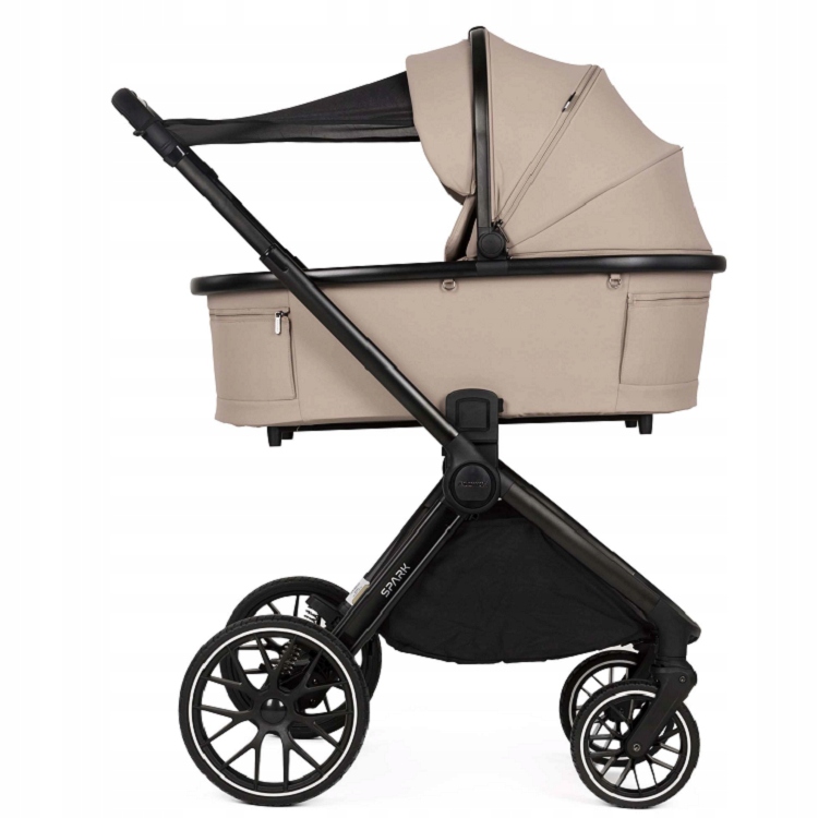 Коляска Spark функціональна та зручна для дитини. Ми можемо встановити його в обох напрямках і зібрати його з рамою. Має регульовану спинку, підніжку та п'ятиточкові ремені безпеки.
