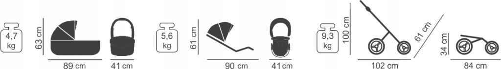 Розміри сидіння коляски: 61 х 90 х 41 см