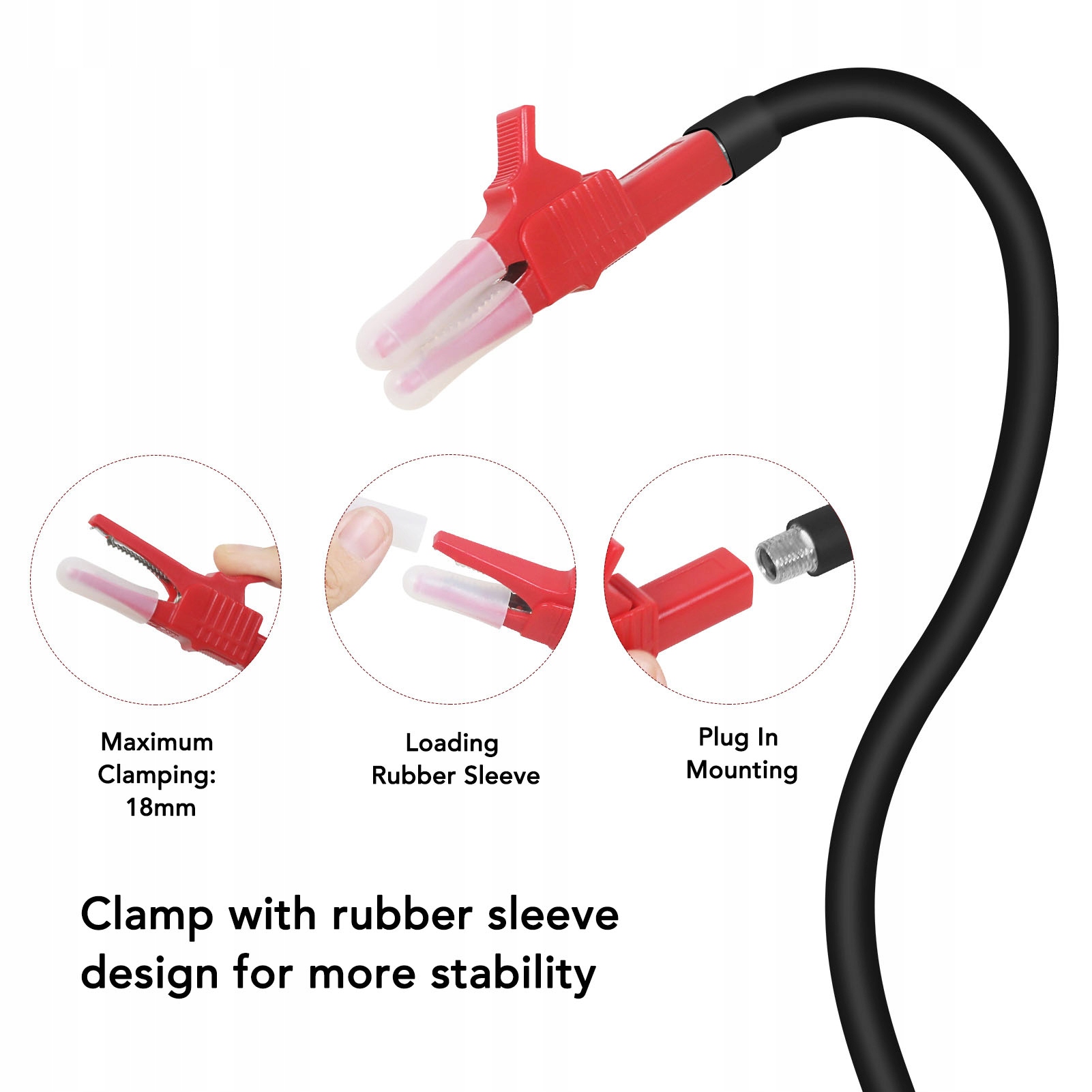 2. Дизайн затискача, що економить простір: Допомога в руках станції Лютоунці має великі затискачі, які безпечно прикріплені до стільників, не приймаючи цінного робочого місця. При максимальній товщині затискач 6 см, затискачі включають гумові прокладки проти течії, щоб забезпечити сильну ручку, захищаючи поверхні від пошкоджень, що забезпечує безпечне та ефективне робоче середовище.