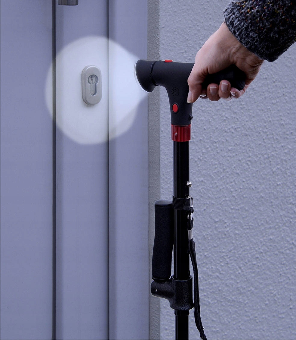 Незалежно від того, перебуваєте ви вдома чи в дорозі, пропонована палиця підтримує вас під час ходьби, але також стабілізує вас, коли ви встаєте та сідаєте, завдяки складаній ручці. Навіть у темряві цей інноваційний продукт неодмінно вразить. Завдяки вбудованій яскравій світлодіодній лампі та вбудованій функції сигналізаціїзі звуковим сигналом і червоним миготливим світлом він виявиться незамінним помічником в орієнтуванні в коридорі чи замковій щілині, а також у екстреній ситуації. ситуації.