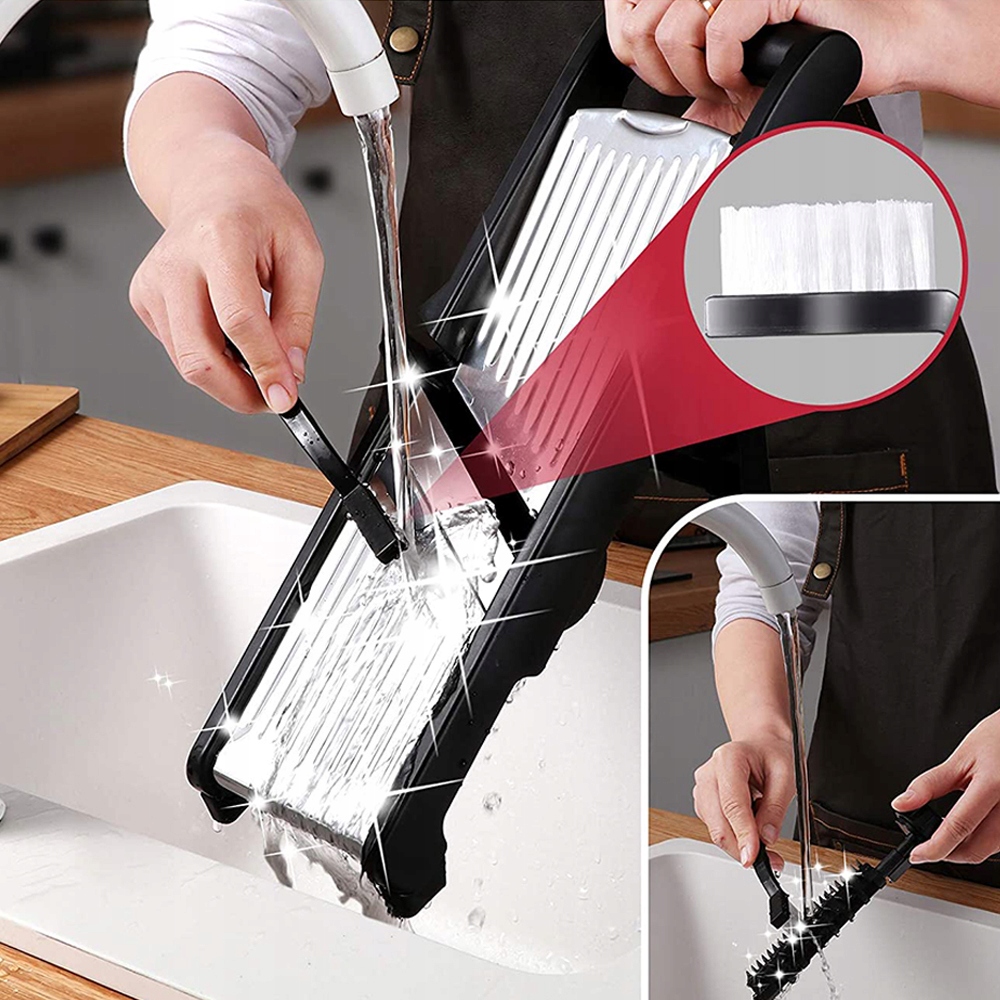 - 🏡 - 【Не потрібно торкатися лез】: У наш комплект входять стійкі до порізів захисні рукавички. Лезо для зберігання. Харчовий контейнер для нарізки. Спеціально розроблена щітка для чищення. Не турбуйтеся про свої пальці – ріжте овочі безпечно та легко.