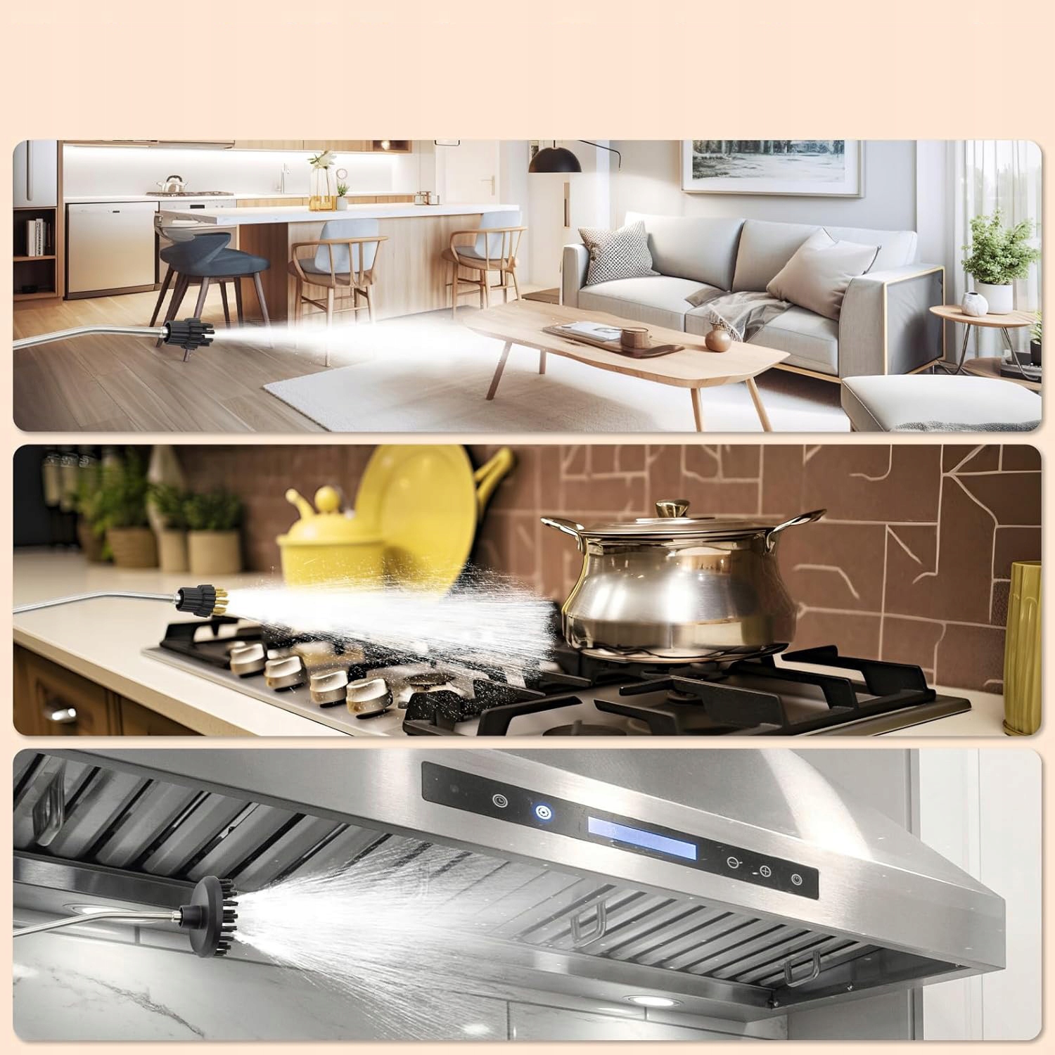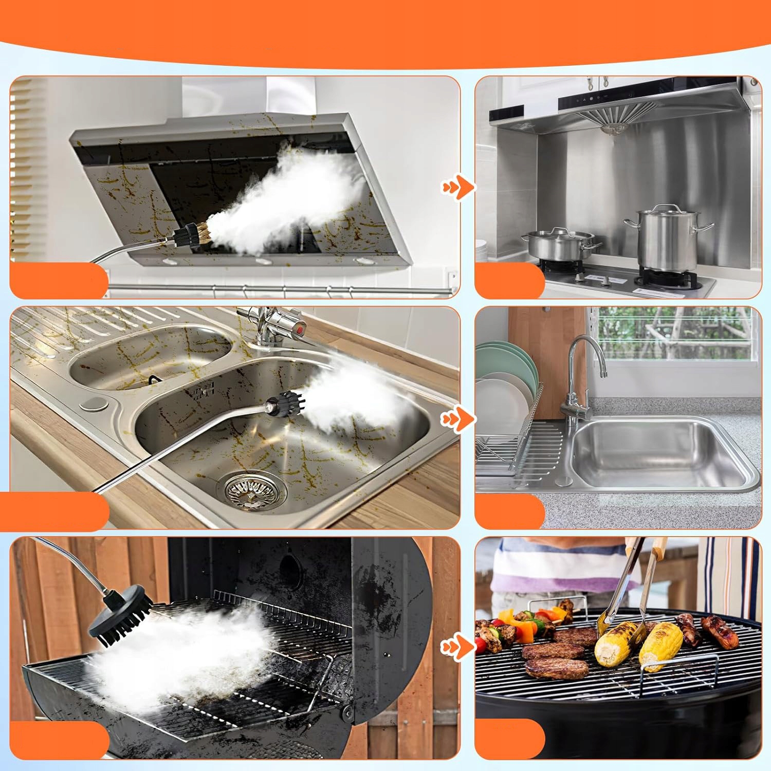 4 Вгору і виробляє пару всього за 10 секунд, і ви можете негайно почати чистити. Цей паровий вакуумний очищувач виробляє гарячу пару 115 ° C, яка може швидко очистити, стерилізувати та видаляти запахи. Крім того, він створює 3 пари тиску, які можуть видалити стійкі плями. Нормальні машини для чищення не видаляють, чому ефективність збільшується на 80-90%, завдяки якому очищення є більш ефективним та швидшим. Для всього з усім з великою круглою пензликом, дротяною щіткою, вичісною щіткою, металевим тривалим бруском та латунною насадкою. Пластикова щітка підходить для іграшок, меблів, поверхонь, скляних поверхонь; Сталева щітка. Підходить для металевих поверхонь, таких як нагрівальні пластини та мийки; Велика кругла щітка, придатна для стін, печей, кухонних витяжок тощо. Вбудований резервуар для води з потужністю 1 л, його можна постійно використовувати протягом приблизно 10-30 хвилин, а для ретельного очищення ви можете додати засоби для чищення, харчову соду та інші засоби для чищення, що простіше і економить гроші. Прозорий дизайн та масштабні маркування полегшують контроль за кількістю води та покращують ефективність очищення. Різні вимоги до очищення, встановлюючи кнопку на шайбу. Пристрій для очищення дивана з портативним розміром та легким будівництвом полегшує зберігання та перенесення, не займаєши занадто багато місця. Машина для чищення підлоги, довгий кабель та некопичувач ідеально підходять для мобільного очищення, не відчуваючи втоми. Ідеально підходить для кухні, ванної кімнати, меблів, автомобілів та багатьох інших.