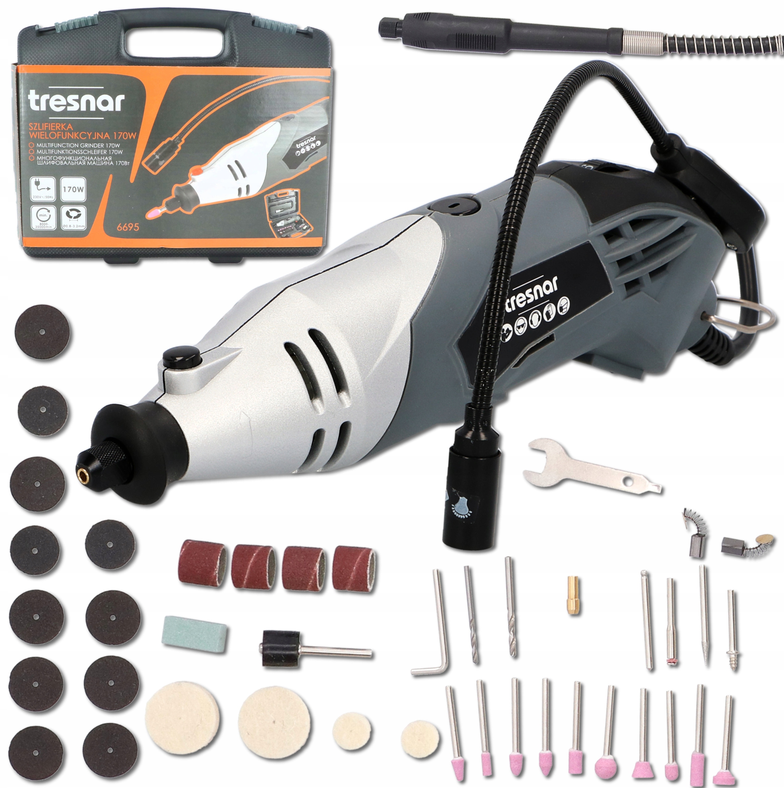 Багатофункціональна шліфувальна машина для деревини Tresnar потужністю 170 Вт — це різновид електроінструменту з різноманітним застосуванням. Фрезерування, обрізка, шліфування — усе одним пристроєм. Виріб має швидкість обертання 8000 - 32500 об / хв без навантаження, має плавне регулювання швидкості, а його параметри задовольнять як професійних користувачів, так і любителів DIY.