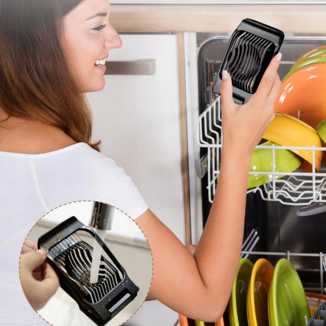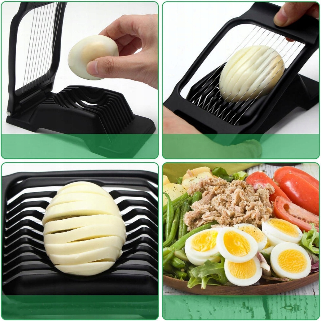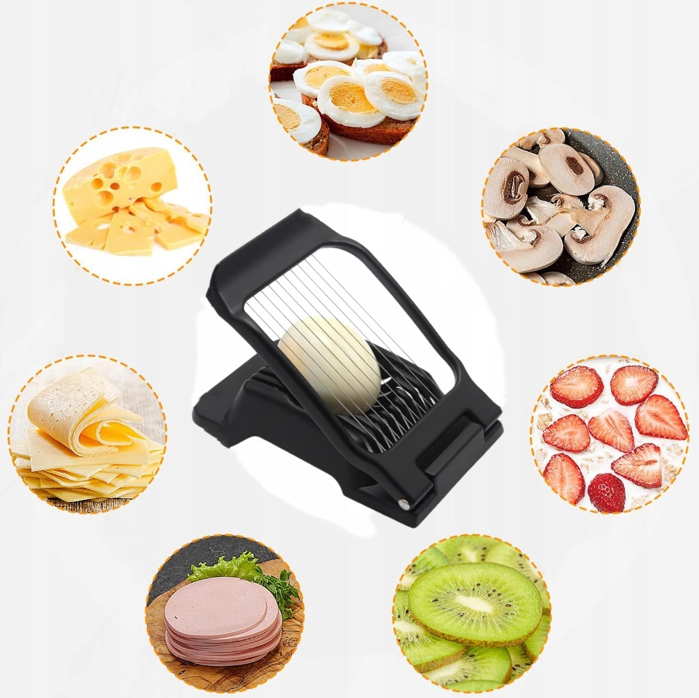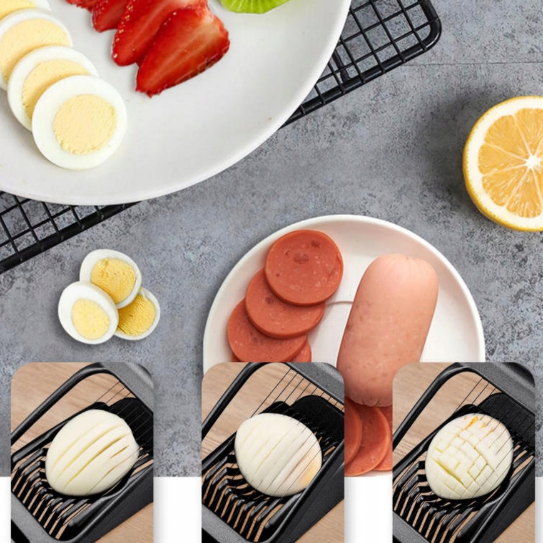 - Багатофункціональність: Багатофункціональна яйцерізка чудово працює не лише з вареними яйцями, але також може швидко та легко нарізати ківі, полуницю, сир, масло, гриби тощо. Вона може заощадити час і енергію та створювати різні форми для декору чи закусок на основі яєць