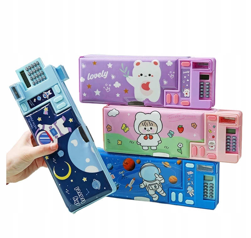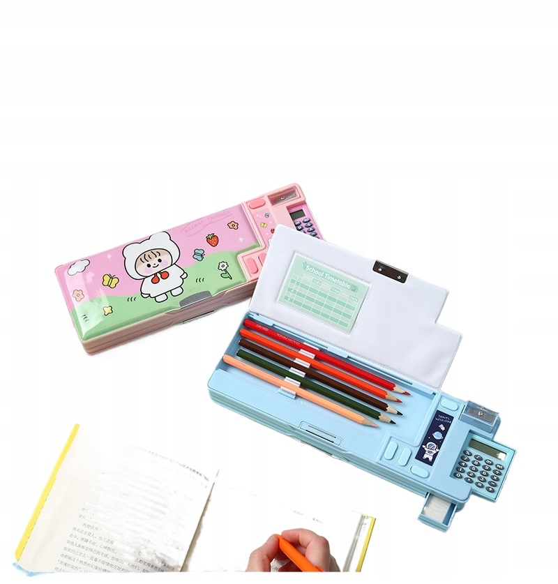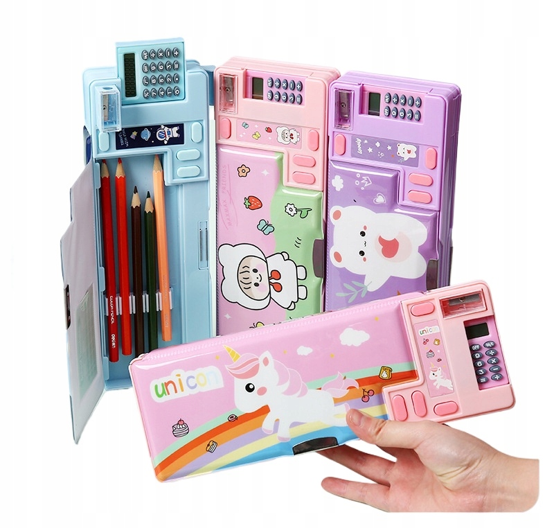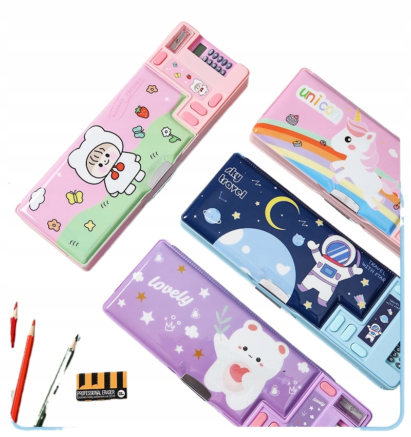 1. Вирізання та практичний дизайн: Цей чарівний пластиковий коробка для зберігання канцелярських товарів має чарівний, мультфільм, який люблять діти. Цей висувний калькулятор олівця має вбудований калькулятор та підошву Tempe, що робить його універсальним інструментом для студентів, щоб компенсувати завдання. Висловлюючи вдячність, цей пластиковий мультфільм - це чудовий подарунок для дітей та підлітків.