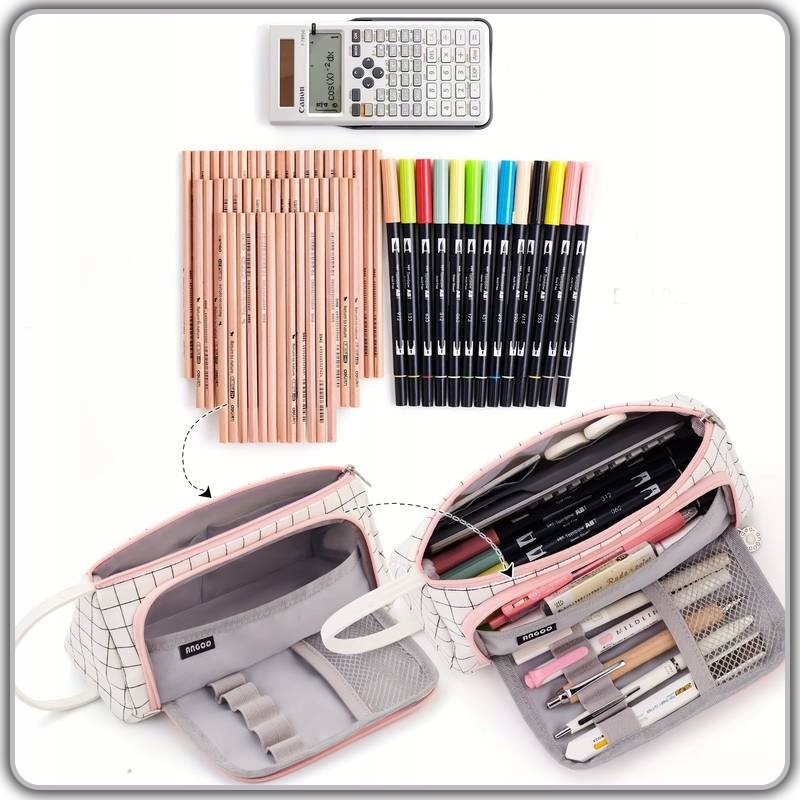 ⭐ Дві кишені для дрібних предметів, наприклад B> 5 Гнучка еластика для найважливіших ручок та олівців