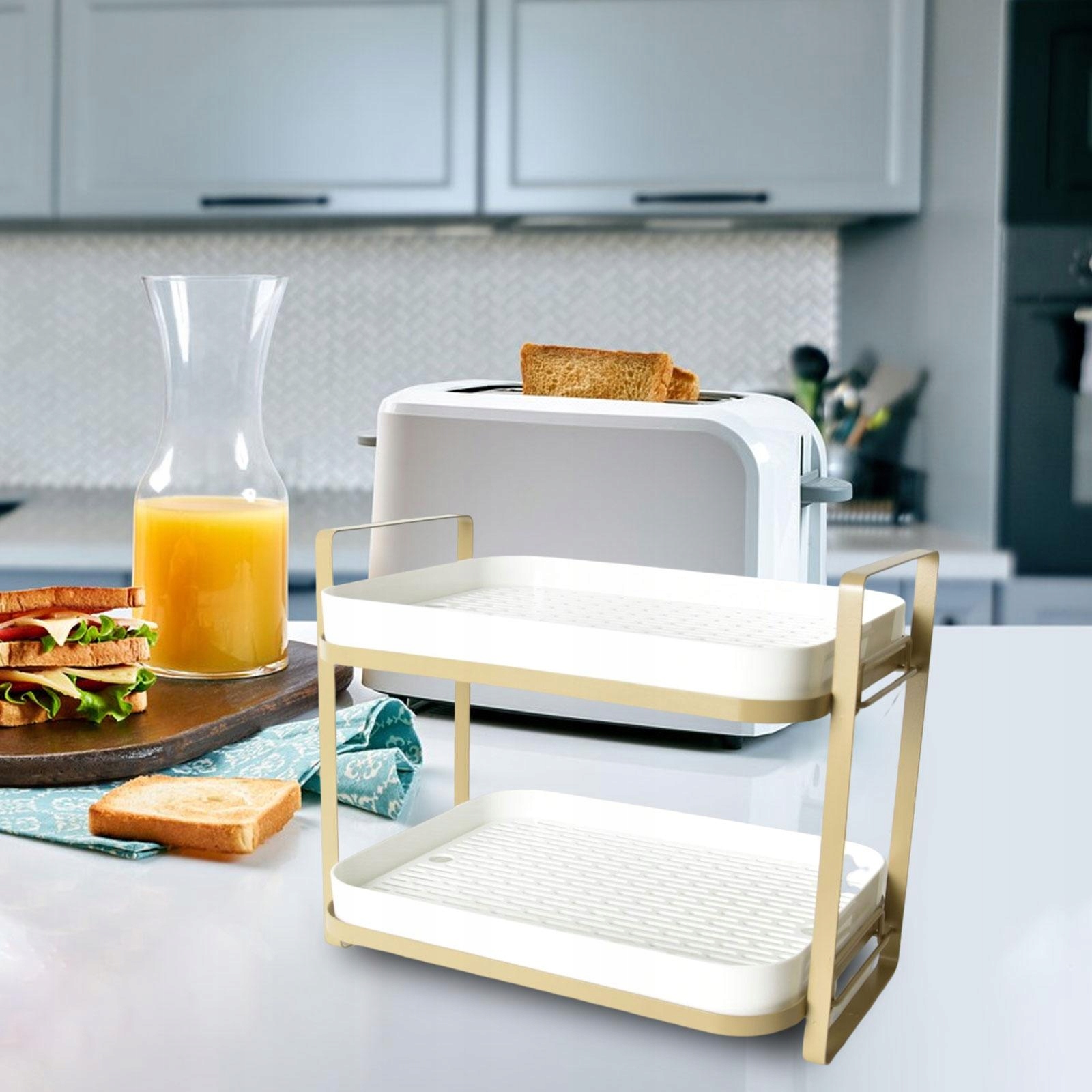 Двошарова полиця для зберігання, полиця для душу, полиця великої місткості для столових речей білого кольору