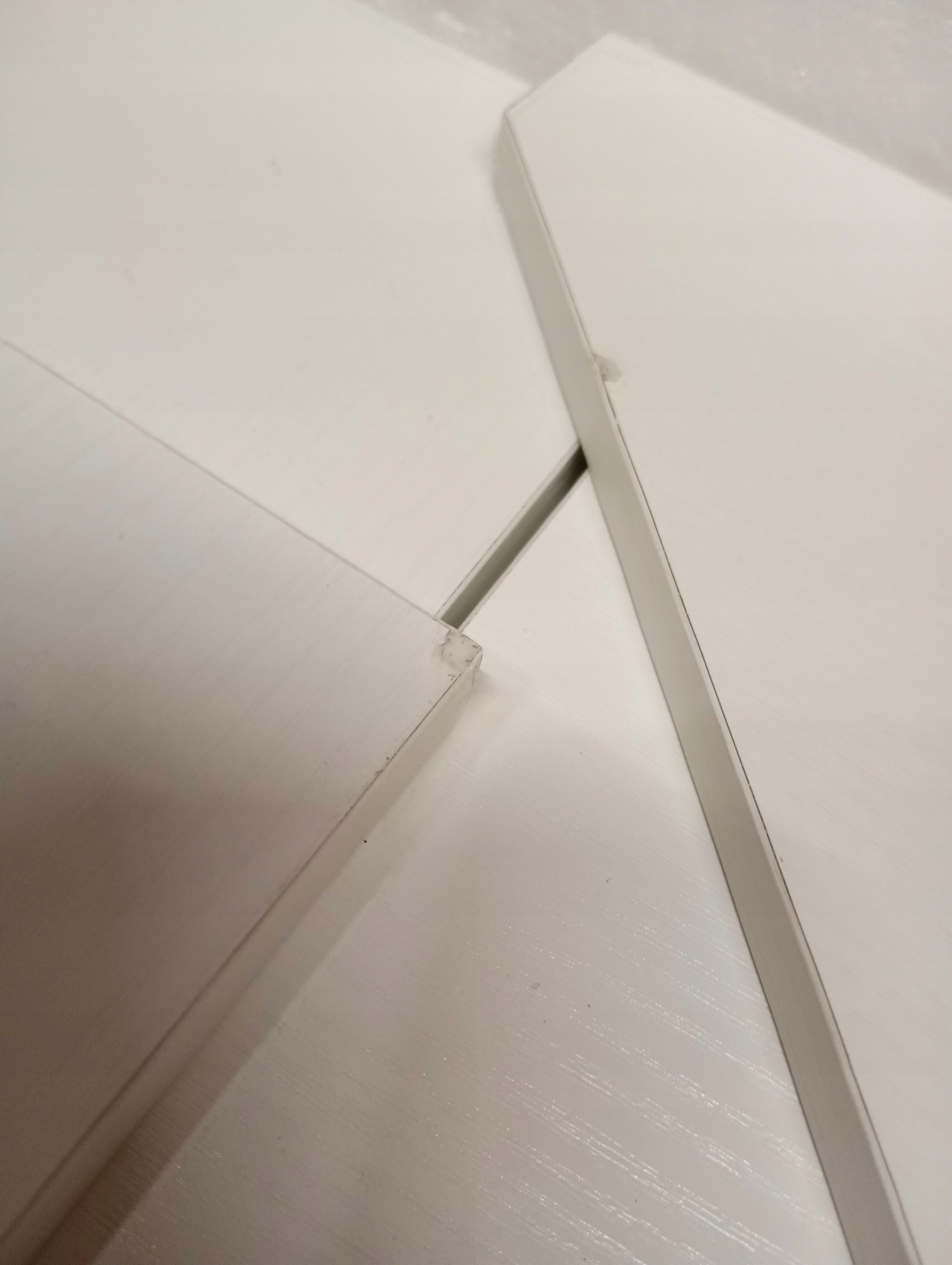 продукт з дефектом, має дефекти по краях у різних місцях, які були доповнені воском до панелей, показані в останніх шести фотографіях.