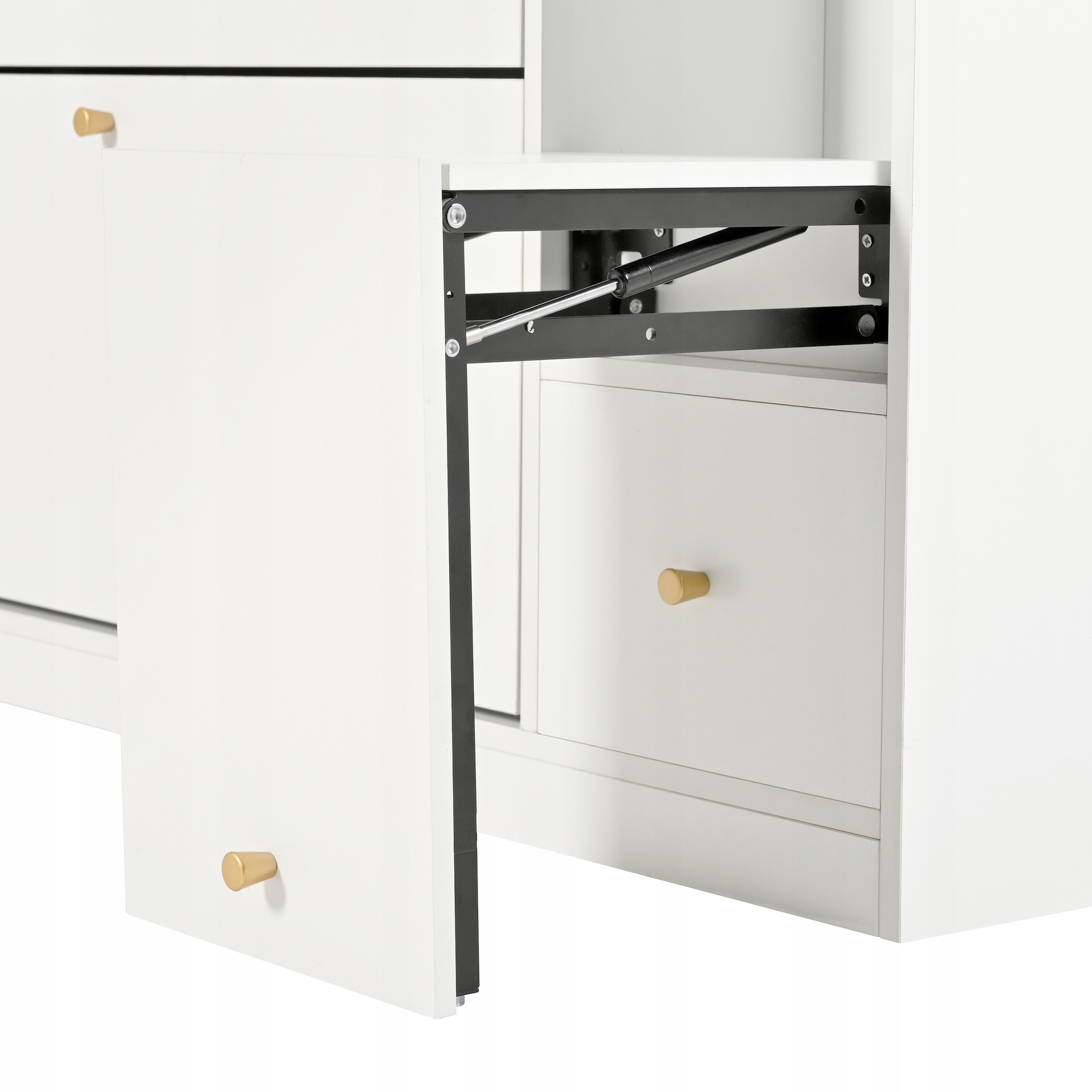 Універсальна перекидна шафа для взуття з 3 висувними ящиками, органайзер для зберігання в коридорі з висувним ящиком, окремо стояча полиця для взуття зі складною лавкою для коридору, білий, 119*24*122