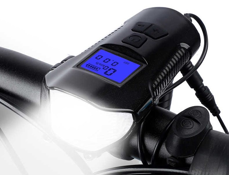 Велосипедний ліхтар з акумулятором - це не просто звичайне освітлення - датчик, що входить в комплект, і 5 вбудованих режимів вимірювання роблять його багатофункціональним реєструючим пристроєм. Завдяки ньому ви можете перевірити пройдену відстань (режим ODO), середню швидкість (AVS), відстань, пройдену за один маршрут (DST), час водіння (TM) або максимальна швидкість (MXS). Все це представлено на чіткому дисплеї з підсвічуванням. Лічильником керують за допомогою великих водонепроникних кнопок на пристрої.