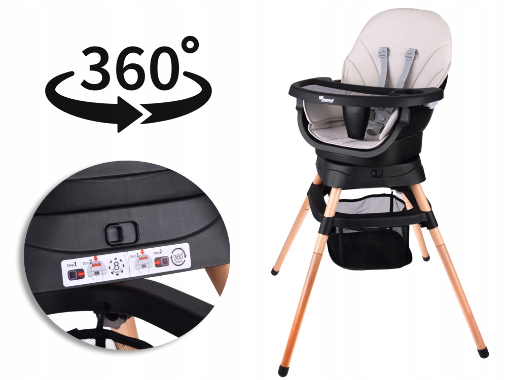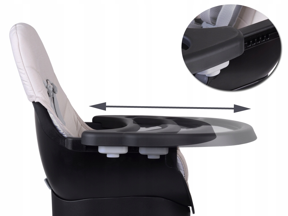 Стільчик для годування - зручний і стійкий, з регульованим підносом і ременями безпеки, що забезпечує комфорт як дитині, так і батькам. Лоток профільований, знімний і легко миється - просто помийте його під проточною водою або поставте в посудомийну машину. Крім того, під стільчиком ви знайдете практичний кошик для дрібниць, які знадобляться під час годування, напр. тканинну пелюшку, вологі серветки чи улюблену іграшку.