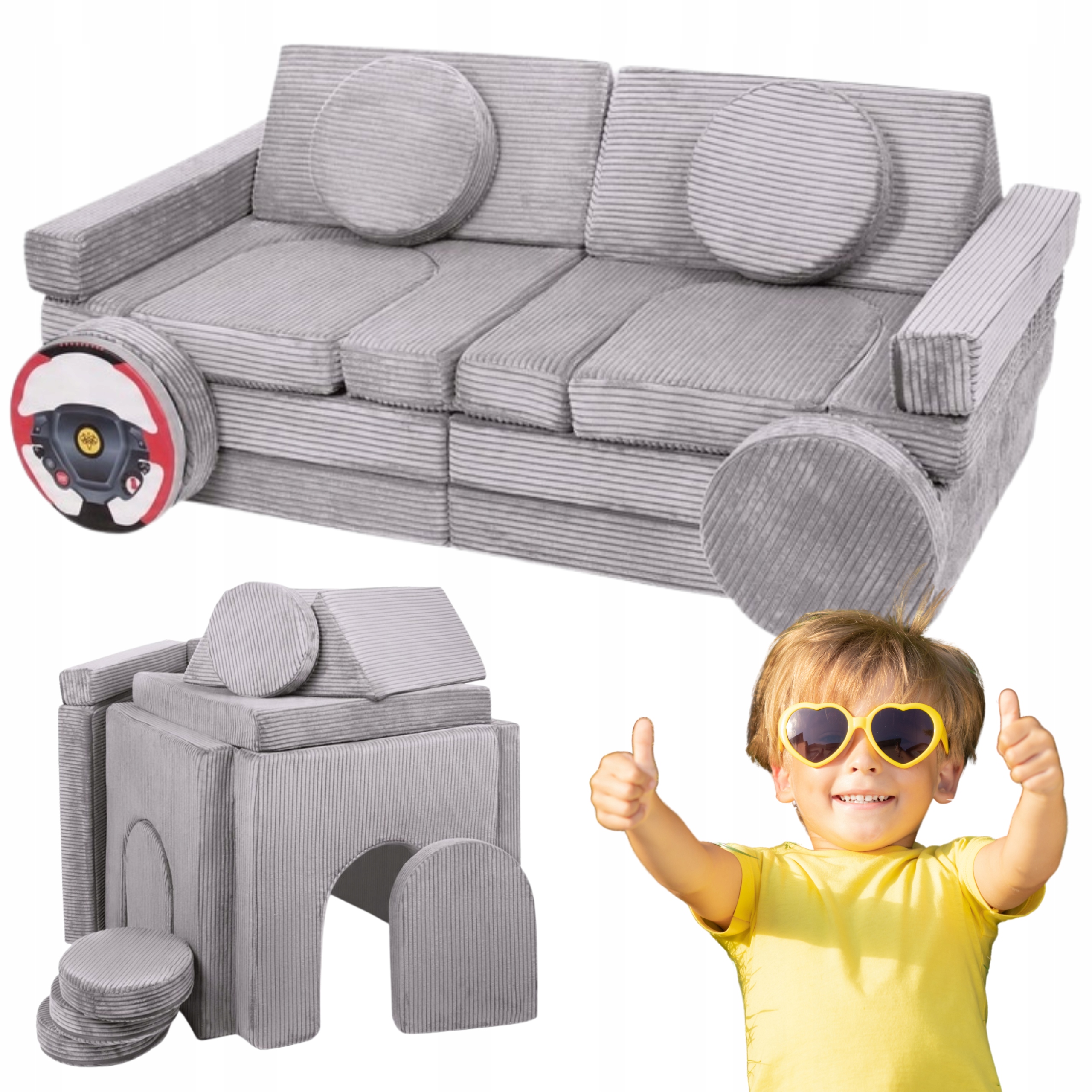 15 модулів працює як чудові блоки - малюк може будувати крісла, пуфи, транспортні засоби (автомобіль з кермом, ракетою, розкопками) та вигодних будівлях. Безпечні та зручні розваги