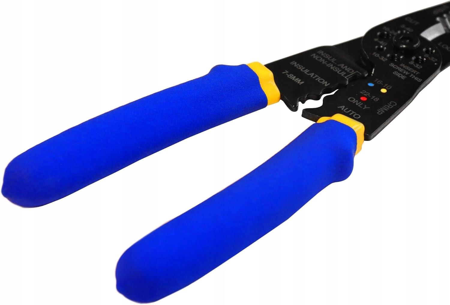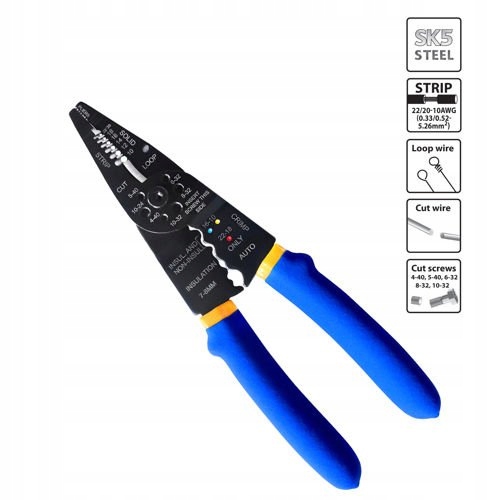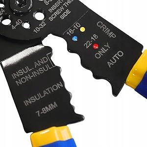 Для легкого обтиску / обтиску ізольованих і неізольованих кабельних наконечників із поперечним перерізом кабелю 10-22 AWG (0,3-5,6 мм²) , плоскогубці мають насічки біля ручки.