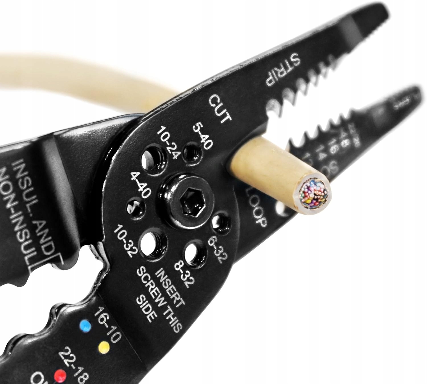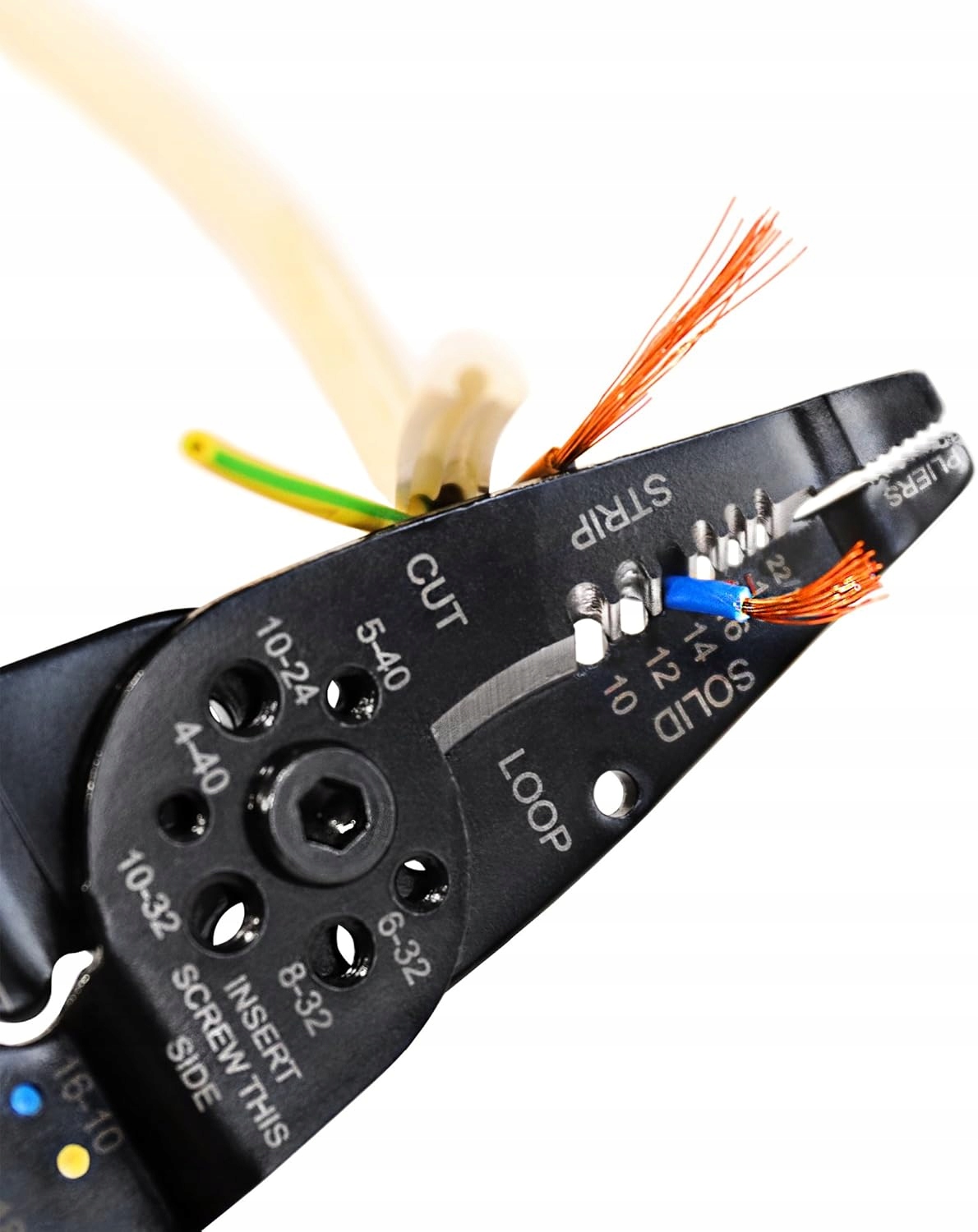 - зняття ізоляції з проводів: 22/20; 18; 16; 14; 12; 10 AWG (0,33/0,52-6 мм2)