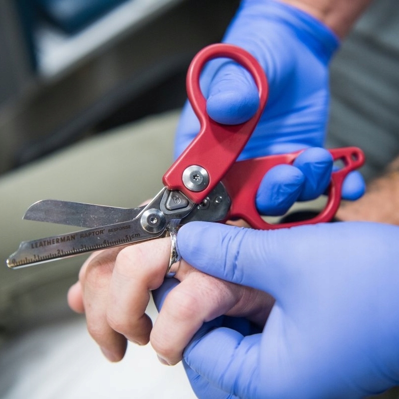 - Ножиці мають різець для обручок. Це дозволяє вберегти пальці від некрозу, викликаного набряком і блокуванням кровотоку в пошкодженій руці, наприклад, з кільцем на ній.
