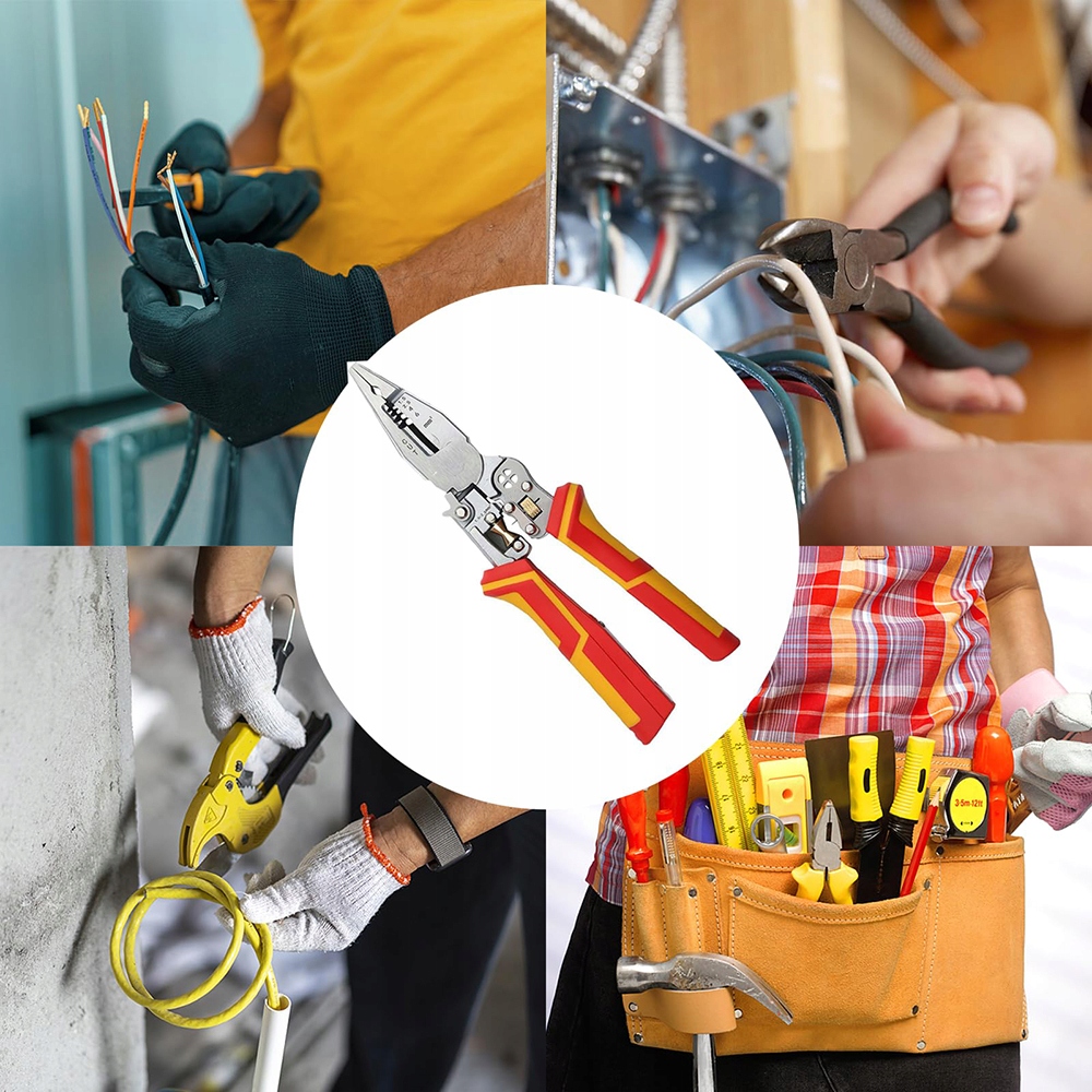 【Висока практичність】Підходить для зачистки проводів перетином 6, 1,5, 2,5, 4,0 мм². Ці багатофункціональні стриппери 9 в 1 є універсальним інструментом, який можна використовувати для різноманітних електричних завдань. Підходить для зачистки та різання електричних кабелів, що робить його незамінним інструментом як для електриків, домашніх робітників, так і для професіоналів.