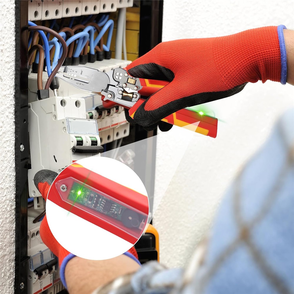 🔶Має дев'ять функцій: зачищення, розрізання проводів, розщеплення проводів, намотування проводів, витягування проводів, обтискання, відкриття кабелів, затягування гвинтів та електричні тестування. Він поєднує функції зачистки та електричного тестування, а вбудований амперметр дозволяє вимірювати в реальному часі під час зачистки, що підвищує точність електромонтажних робіт.