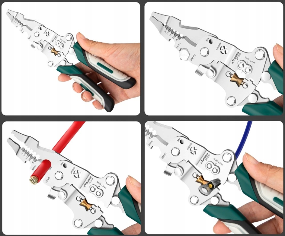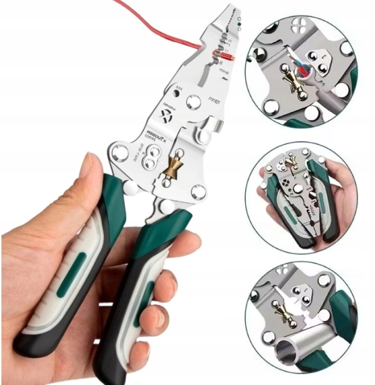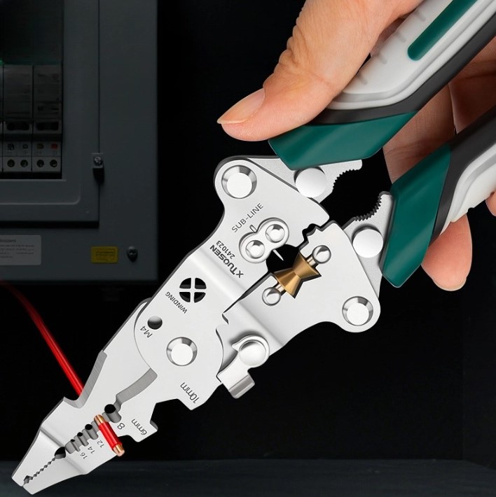 Поєднуючи 10+ функцій, як-от обтиск, зачищення дроту, очищення, намотування, обжим, відгвинчування, різання, обривання та відклеювання дроту, він справлятиметься з обслуговуванням електрики та домашньою проводкою лише однією парою плоскогубців, усуваючи потребу брати з собою купу інструменти