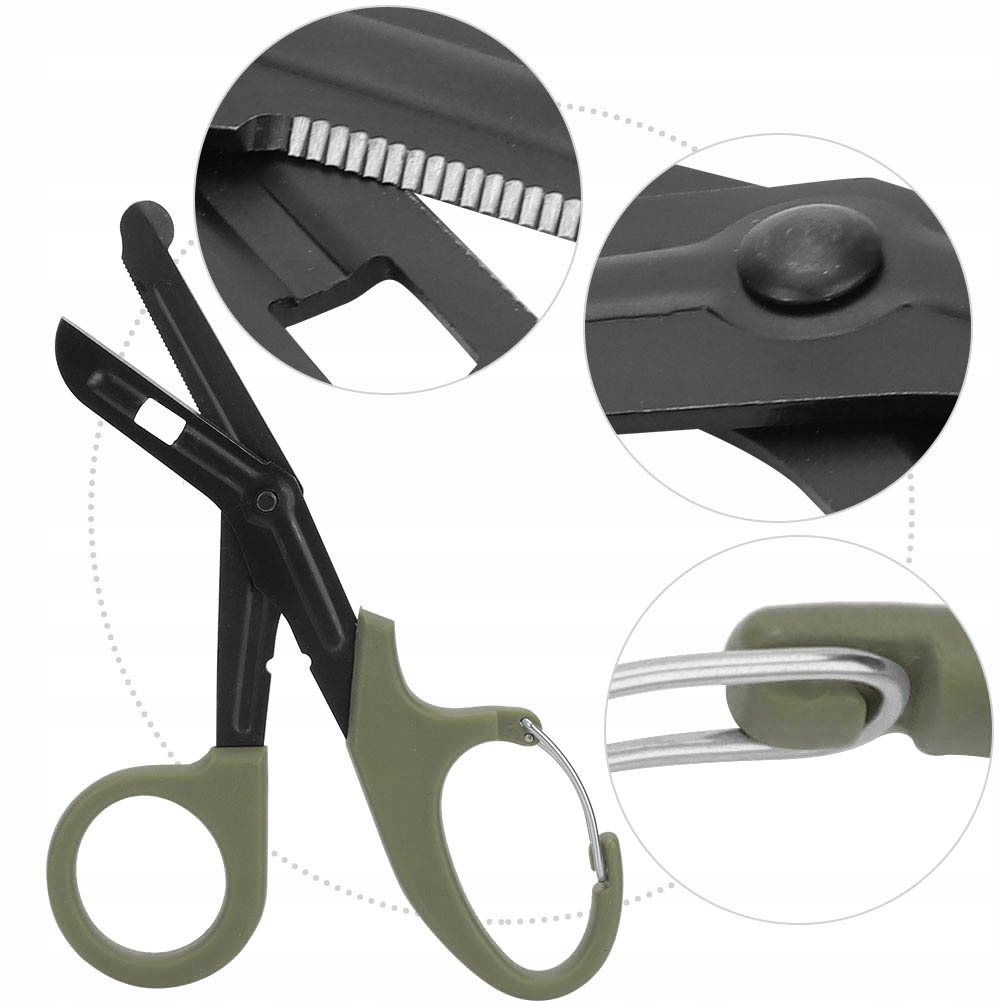 ⏺Зазвичай використовується для невідкладної допомоги в польових умовах, використовується для відрізання одягу або тканини поблизу пораненої людини без необхідності повертати тіло, щоб зняти одяг.