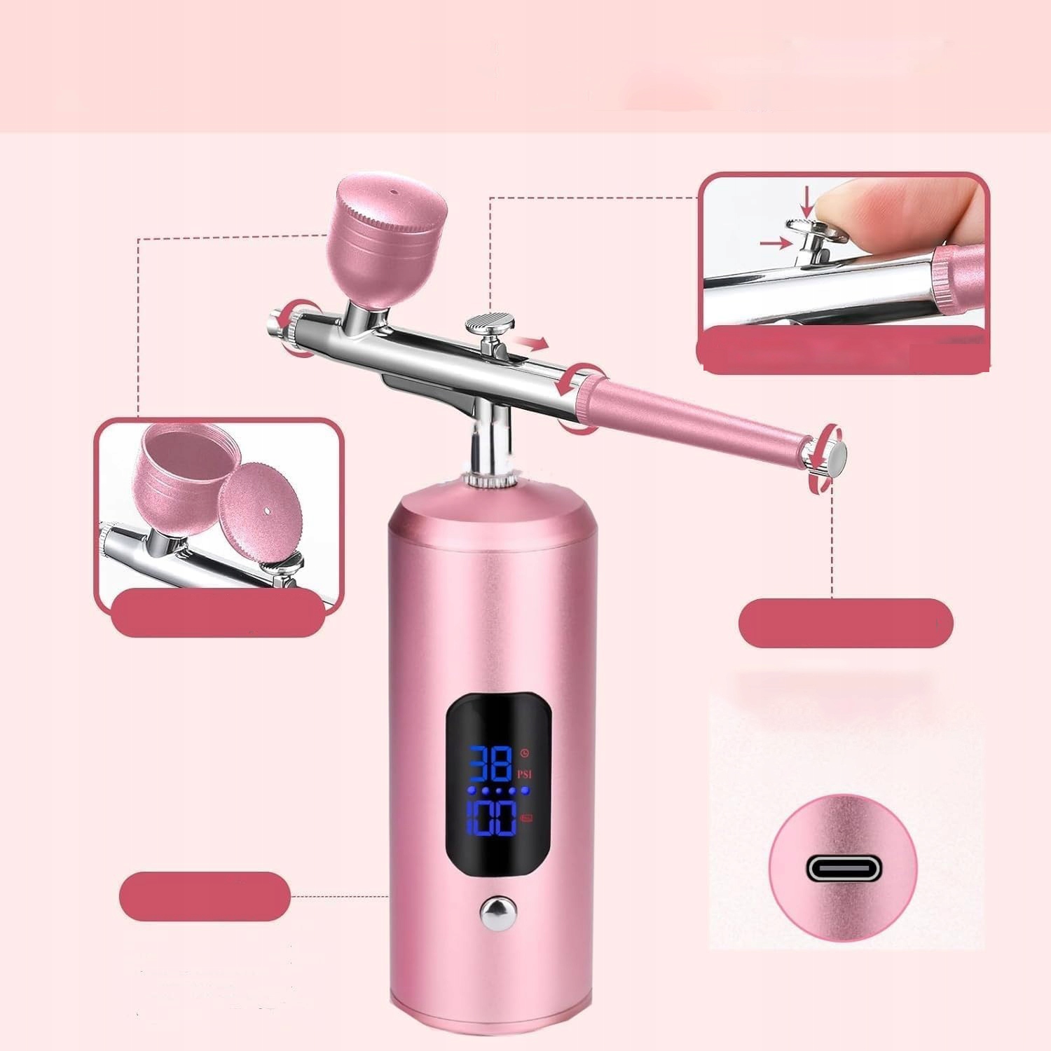 БАГАТОФУНКЦІОНАЛЬНИЙ АЕРОГРАФ ПІСТОЛЕТ З 3 РІВНЯМИ ТИСКУ ДЛЯ МАКІЯЖУ