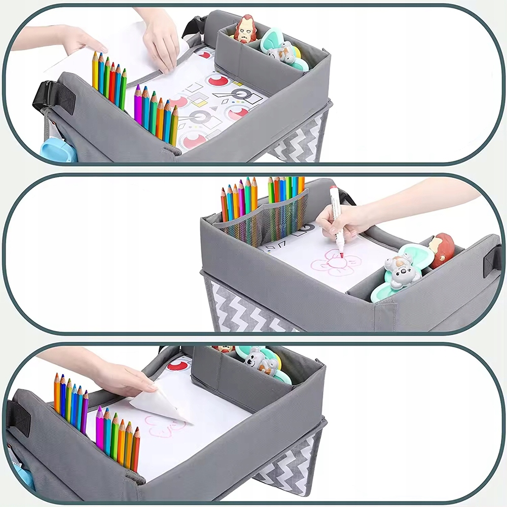 Багатофункціональний дитячий дорожній столик в машину, органайзер сірого кольору