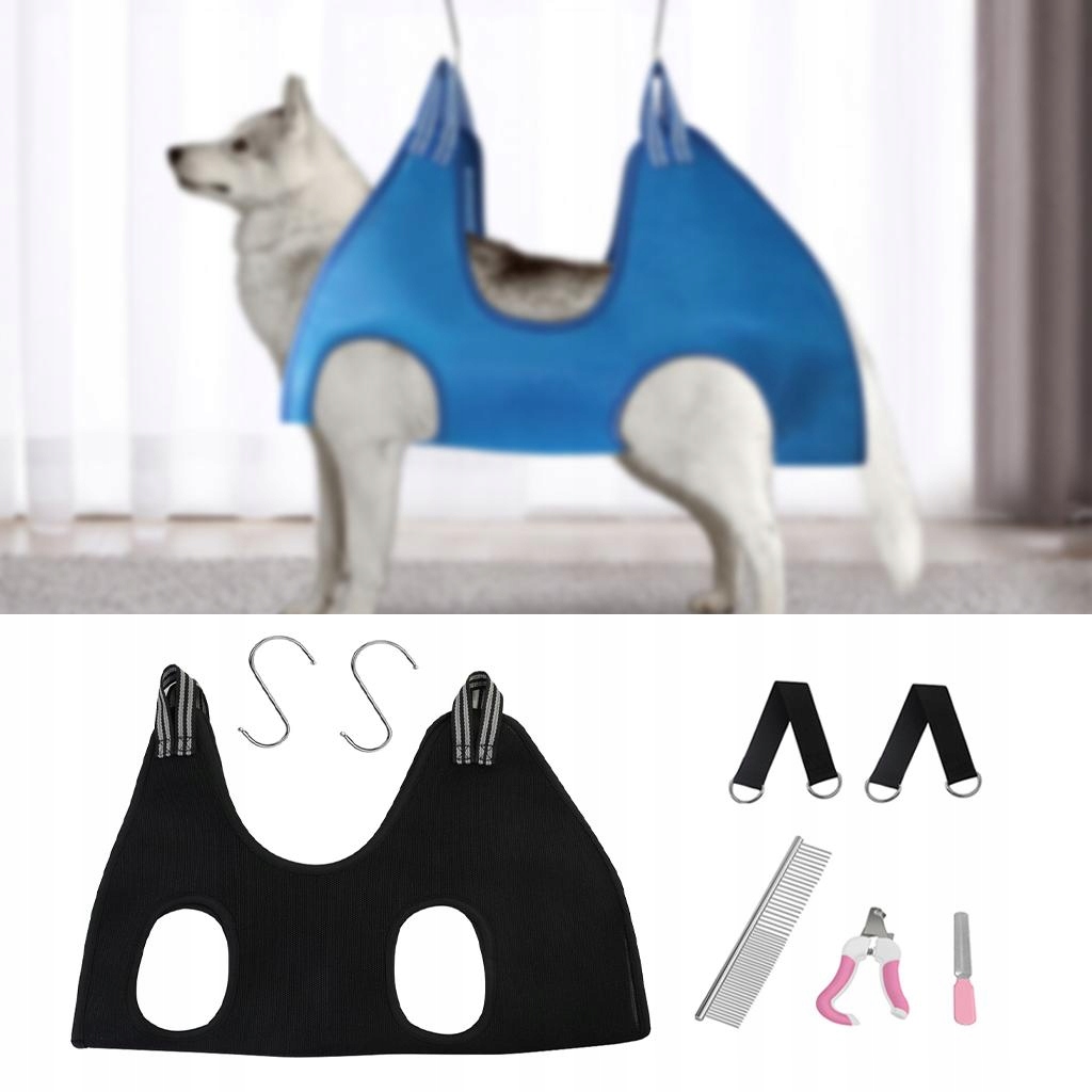Набір гамаків для догляду за тваринами, включаючи S, плоскогубці, файли, гребінці, суспензії тощо, завдяки якій ванній, турботі, різання кігтів або гоління простіші, зручніші та швидші.
