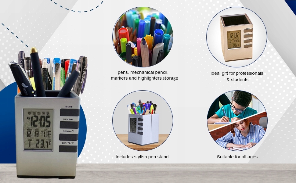 - Ручка Пен - Чудовий годинник також діє як ручки, олівці, лінії, лляні еластики та інші невеликі офісні аксесуари, що допомагає утримувати замовлення на столі.