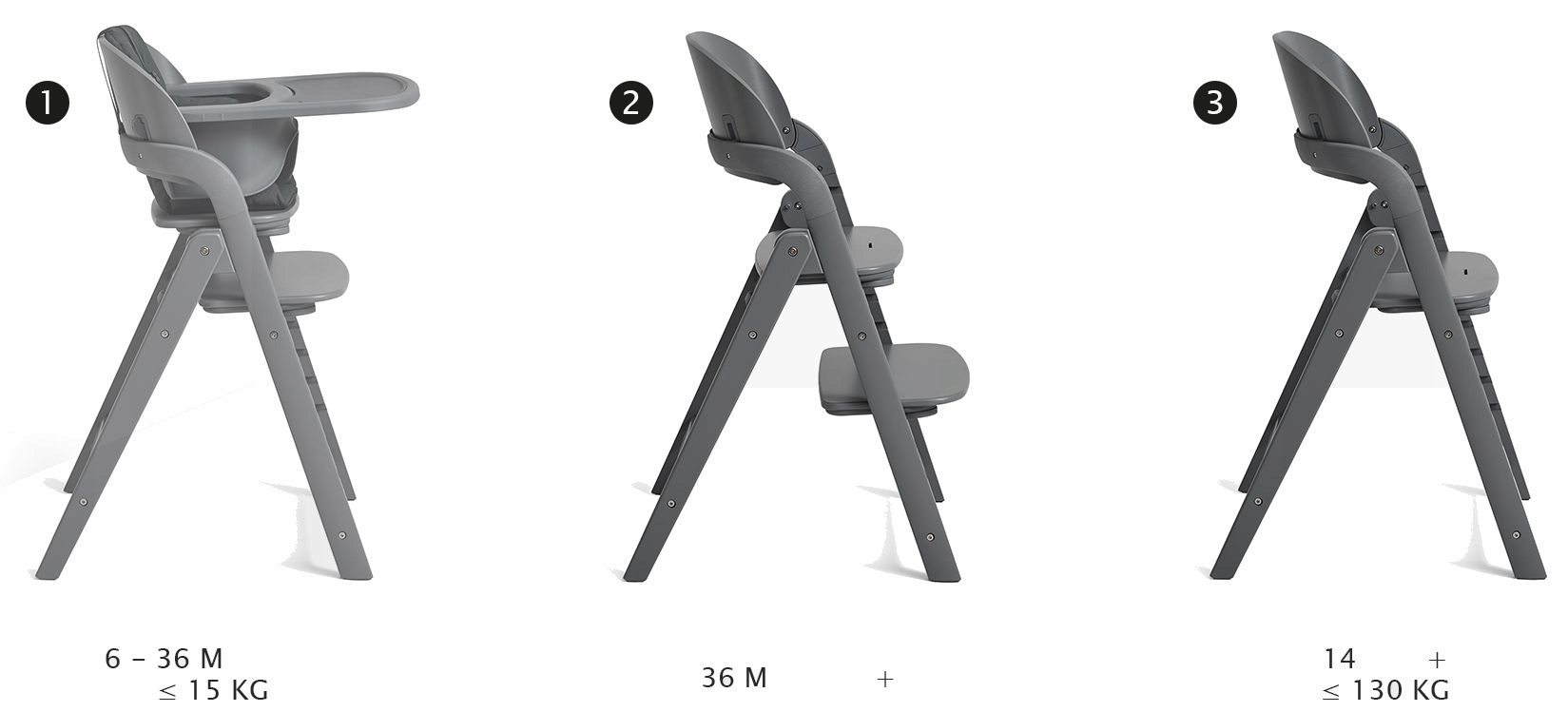 Крісло адаптується до мінливих потреб користувача - воно пропонує повне регулювання висоти сидіння та регульовану підніжку, що забезпечує оптимальну посадку на кожному етапі розвитку.