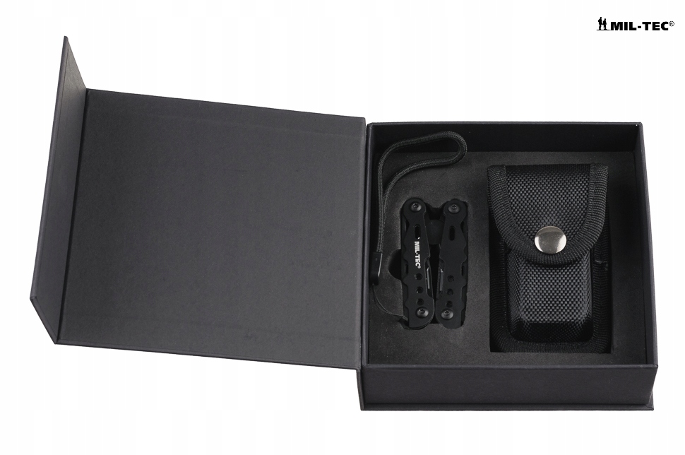 Сучасна кишенькова мультитул. Продукт німецької марки MIL-TEC. Multitool - це набір з дев'яти практичних інструментів та декілька функцій в одній - кишеньковій майстерні. Розроблений для того, щоб зробити його легше, пружинні механізми роблять використання мультитулу простим і приємним. Численні перфорації, вирізання та буріння дозволяють значно зменшити вагу, зберігаючи жорсткість структури. Жорсткий нейлоновий корпус і зап'ястя входять. Multitool був упакований в естетичну коробку, ідеальний подарунок. Перфорації обшивки сприяють хорошому зчепленню. Інструменти, виготовлені з нержавіючої сталі 2CR13. Як сталеві, так і алюмінієві ручки ручки були піддані чорноті, жорсткому окисленню та анодизації. Інструмент, оснащений плоскогубцями з плоскогубцями та дротяним різаком та кабелями. Пружина викликає спонтанні пробки, внутрішнє розміщення пружини гарантує експлуатацію технічного обслуговування. Усі інструменти для складання мають пружинний замок перед мимовільним складанням та розгортанням. Важкий випадок з нейлону. Захисне наповнення піни, яка покрита слизькою нейлоновою тканиною зсередини. Кришка закрита порошком, оснащена ременем у поясі. Суцільний файл з можливістю пиляння деревини та пластмас, ідеально підходить як файл нігтів. Файл закінчився інструментом підриву. Вузька перехресна викрутка з можливістю буріння в дереві та пластику. Вузька плоска викрутка, яка закінчується шампуром для стукаючих штифтів, пронизливих матеріалів або малювання на твердих поверхнях. Плоска викрутка в розмірі 2, ідеально підходить для відкручення гвинтів і складання складених елементів. Гостра пилка для деревини, мотузок, текстилю та пластмас буде використовуватися під час очищення риби. Відкриття пляшок закінчився з плоскою викруткою.