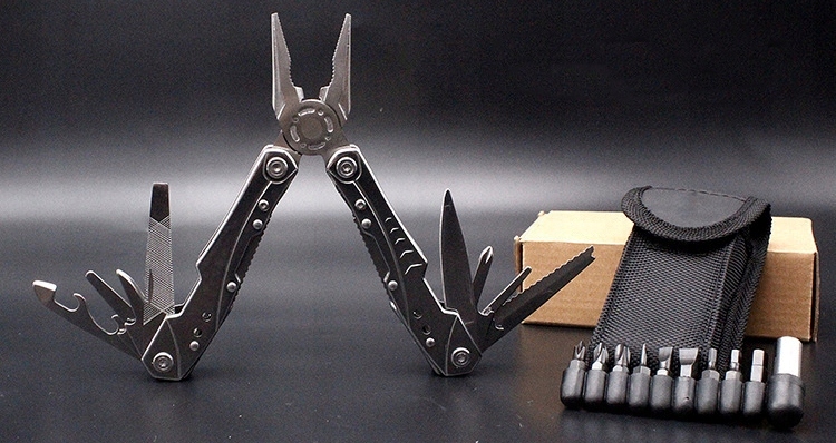 Виробник виготовлений з найвищої якості нержавіючої сталі, що робить його дуже міцним і не знищить після першого використання, як дешевші замінники. Конструкція була розроблена таким чином, що вона, ймовірно, лежить у вашій руці не має значення, функція якої ми хочемо використовувати. Набір включає спеціальну обкладинку, яка дозволяє нам зручно утримувати мультитул один з одним як інструмент необхідності.