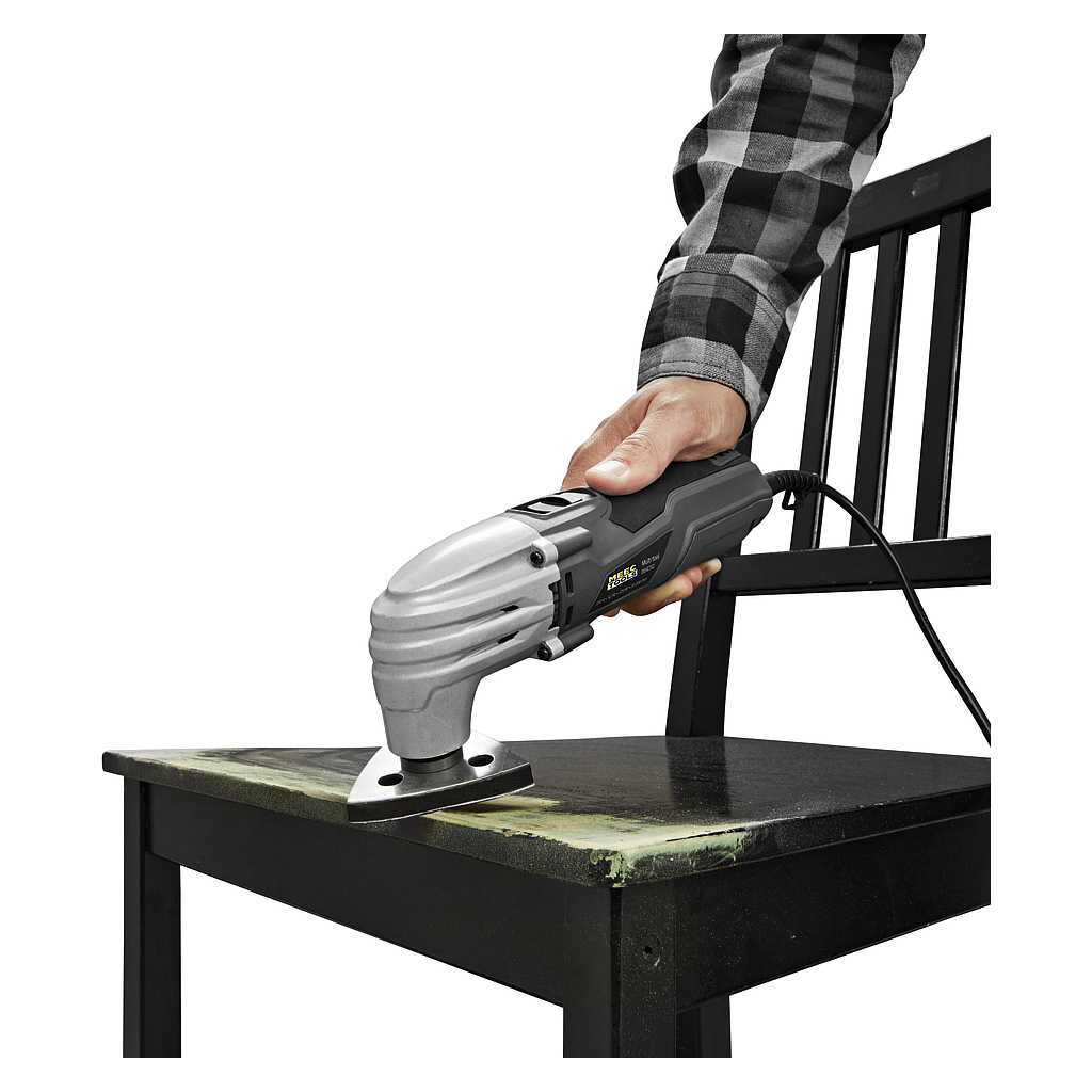 Багатофункціональний пристрій від Meec Tools для різання, скоблювання, шліфування та фрезерування більшості матеріалів, таких як пластик, дерево, гіпс і метал. Шестигранний ключ, що входить у комплект, забезпечує швидку й легку заміну інструменту.