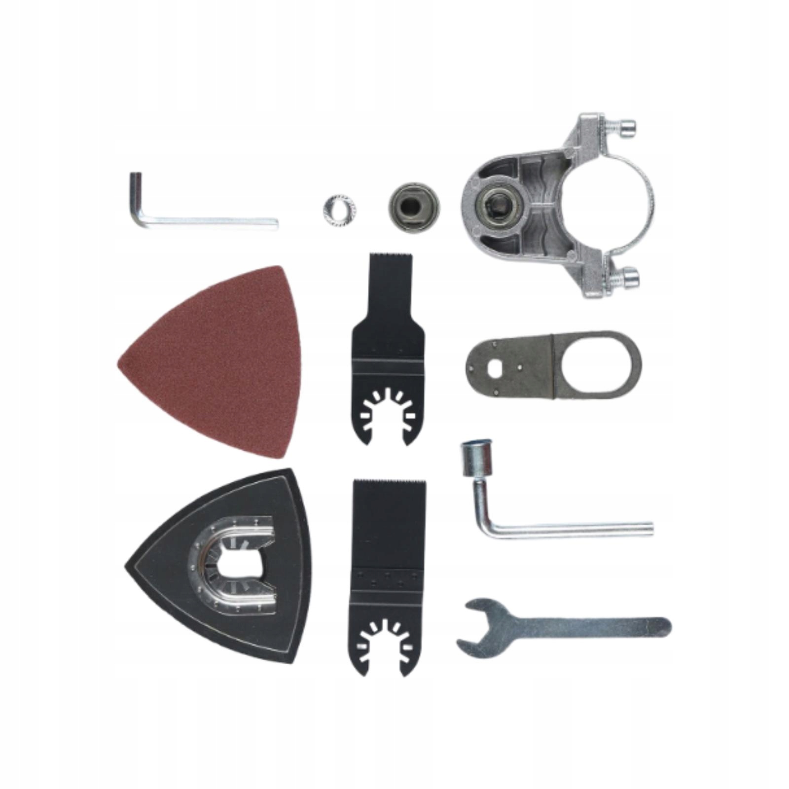 [Пакет містить]: 1x головка адаптера, 2x лезо, 1x шліфувальний диск, 2x пісочні папери, 1 набір ключів встановлення.